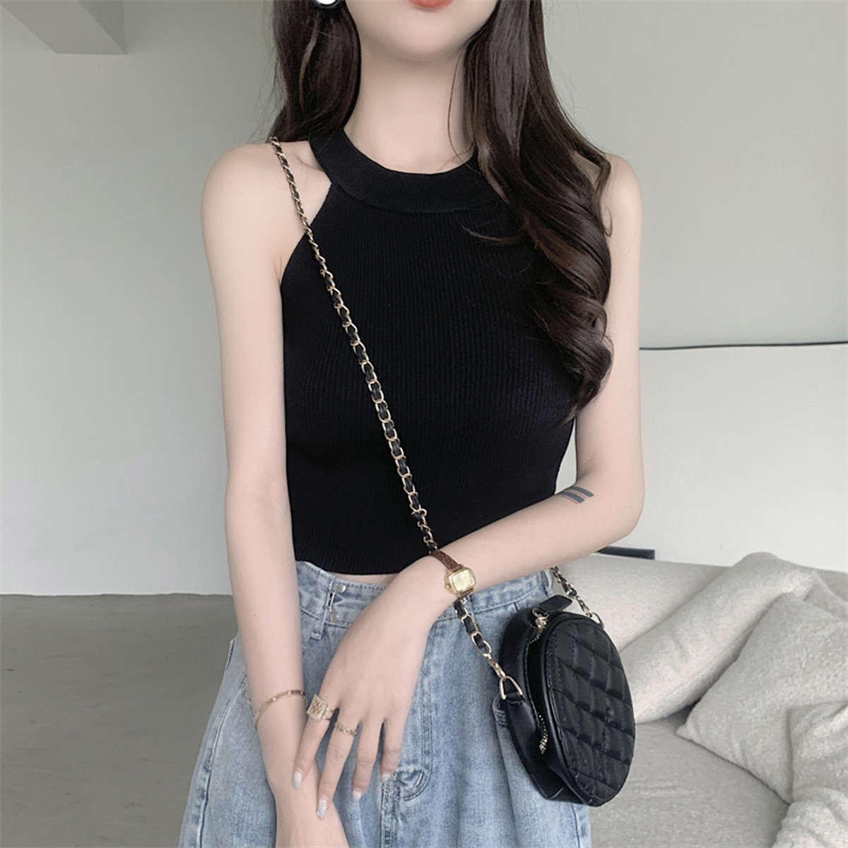 挂脖背心网红外穿显瘦美背短款背心上衣女 037699