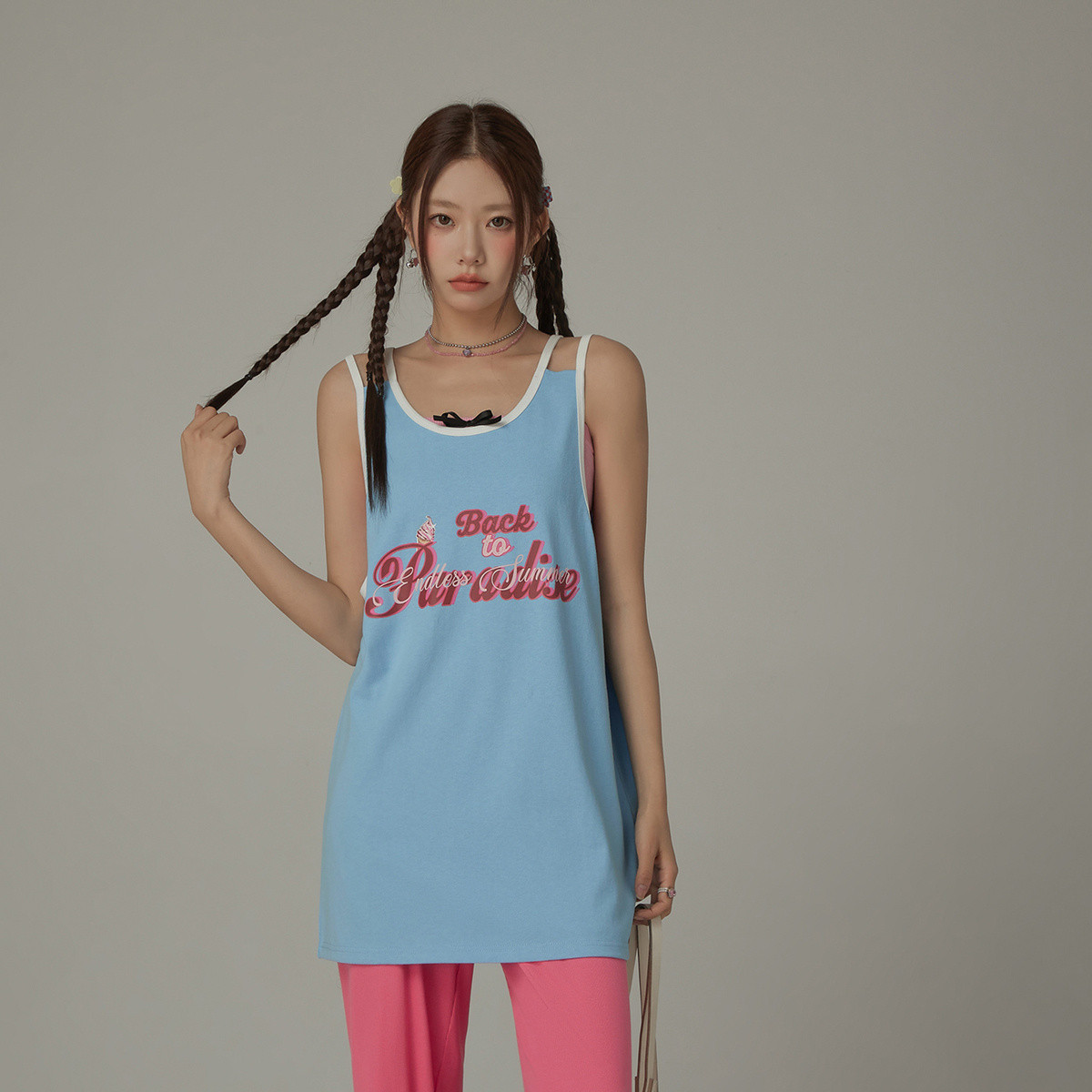 CHUU印花无袖背心女春夏镂空吊带撞色中长上衣 656595
