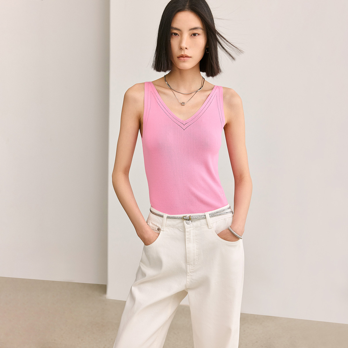 【和纸纱】V领纯色含桑蚕丝镂空休闲背心女夏季薄款针织马甲吊带 318803