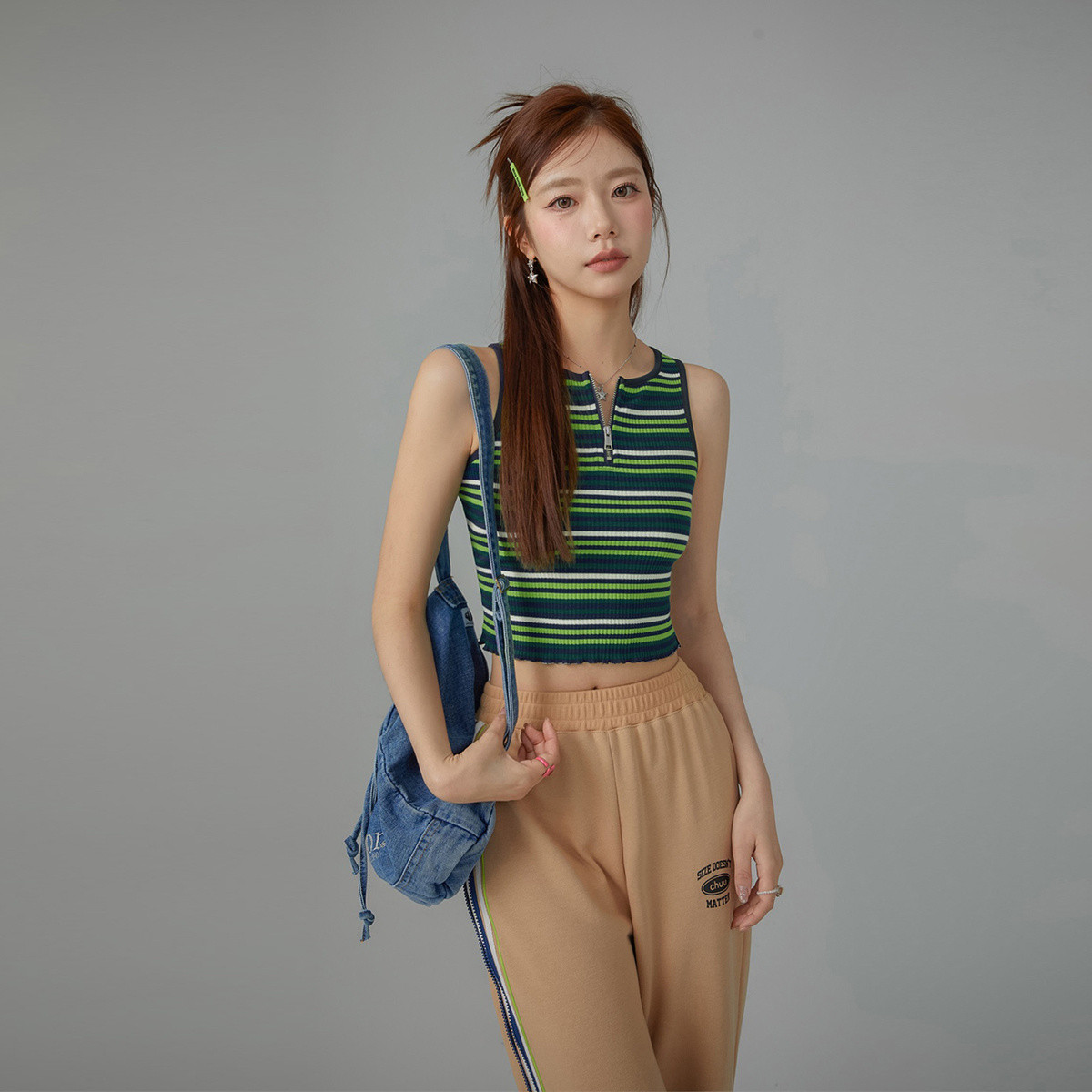 CHUU条纹背心女士春夏时尚甜辣撞色外穿吊带上衣 988307