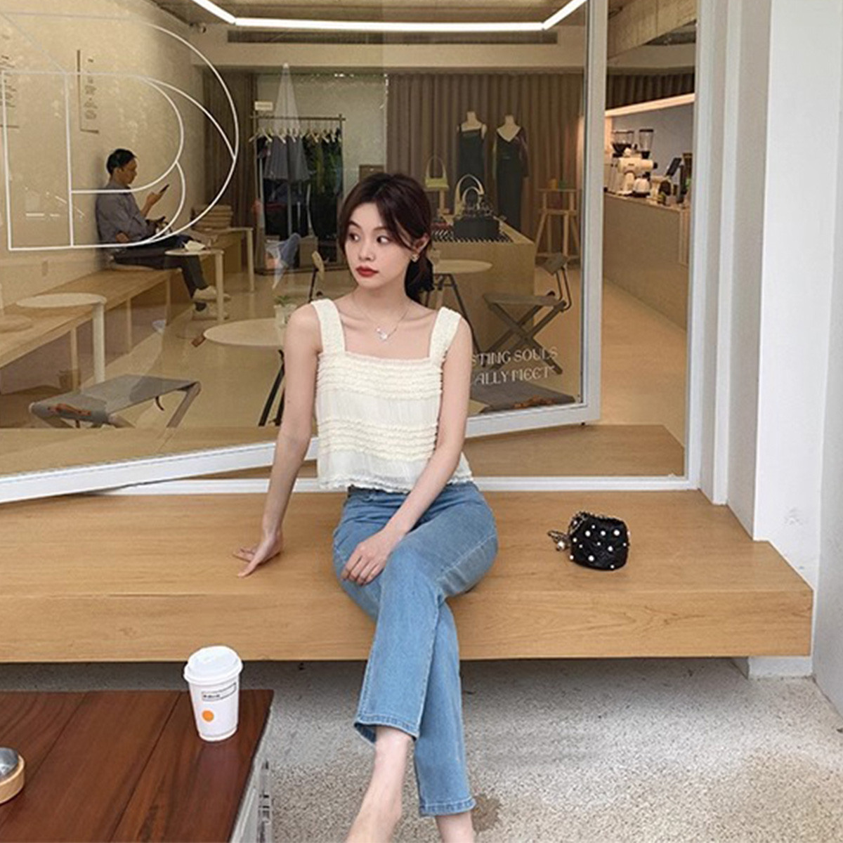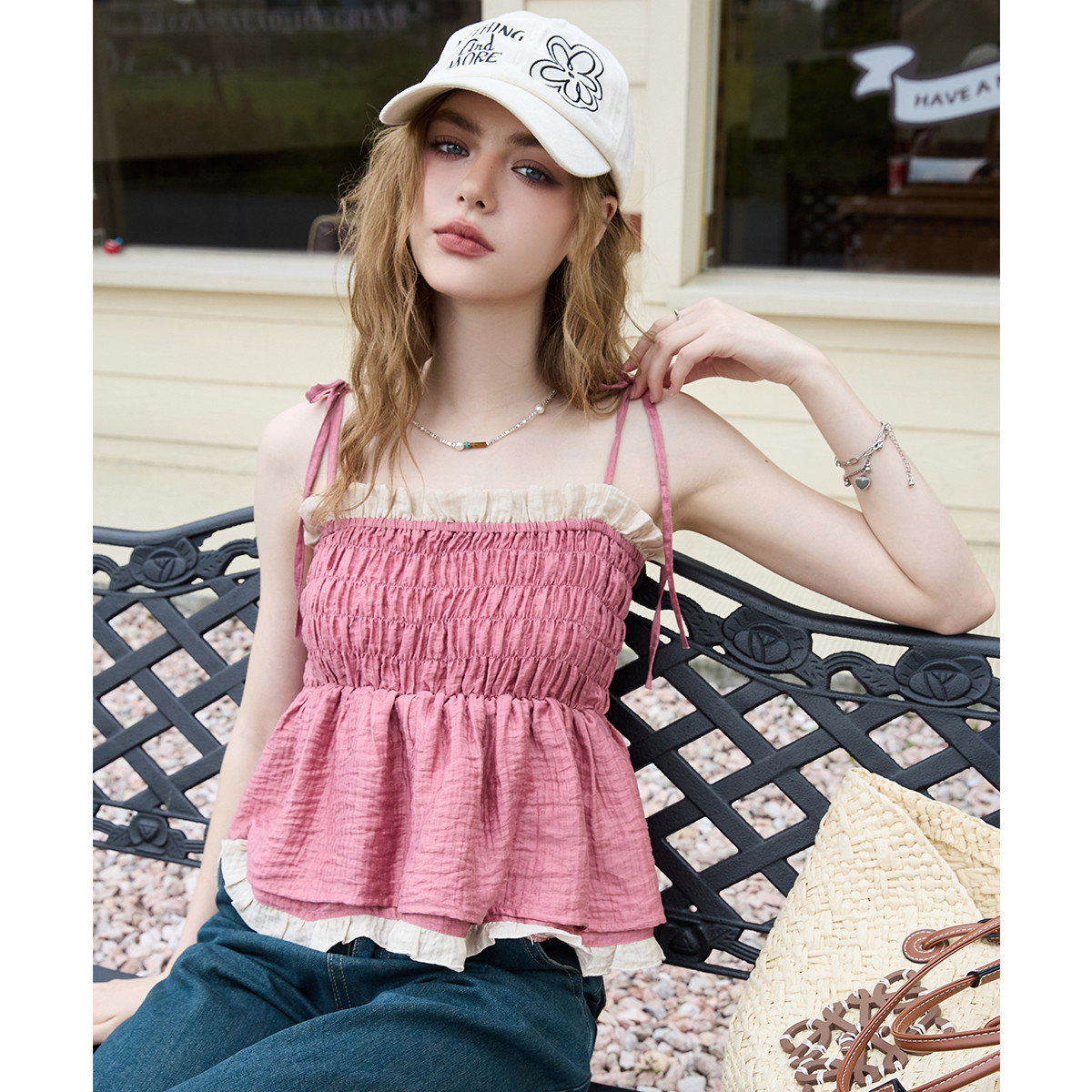 甜辣拼接设计感小众褶皱收腰外穿女式背心夏季个性吊带 780125