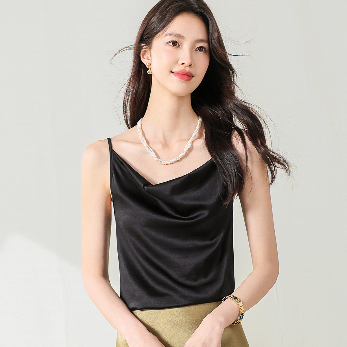 夏款真丝高级感法式无袖上衣女气质设计感背心吊带 435801