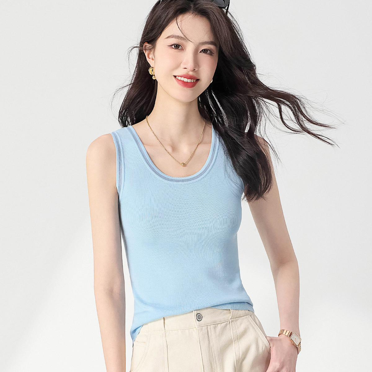 【含桑蚕丝】基础款纯色简约圆领针织打底背心内搭无袖T恤 777235