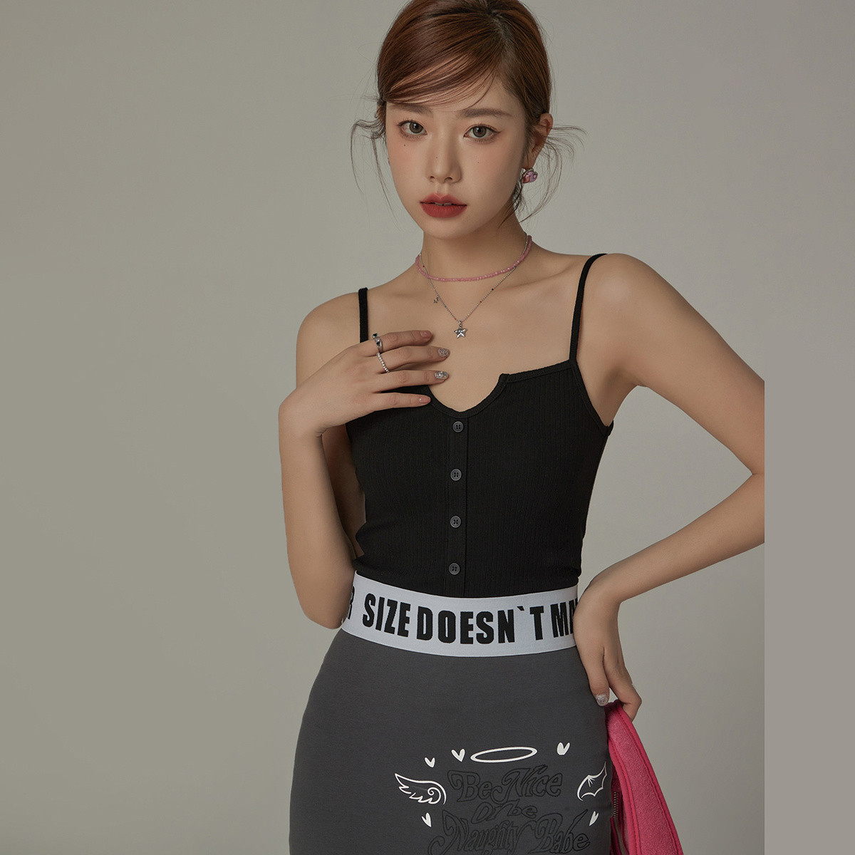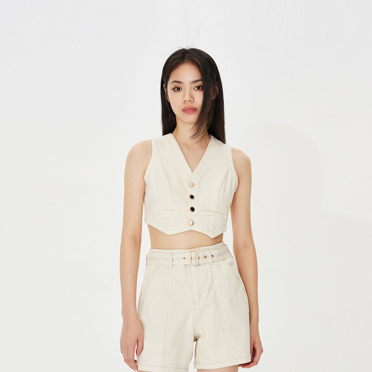 纽扣V领吊带女春夏贴标小众内搭背心修身无袖上衣 453971
