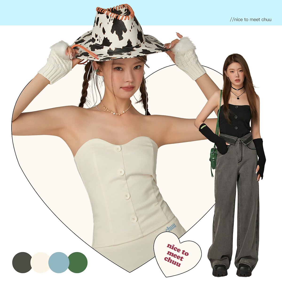 CHUU字母刺绣抹胸背心女春秋纽扣无袖辣妹修身上衣 371731