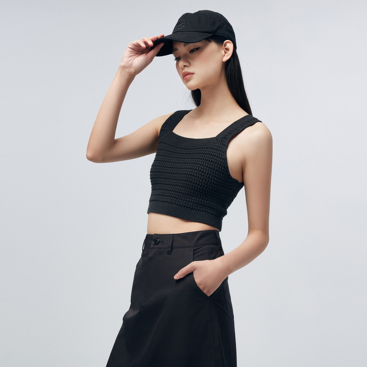 黑标系列春装 配内搭修身短款吊带针织衫女 658063