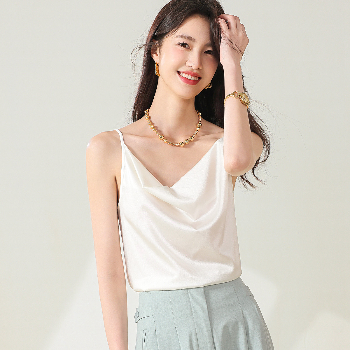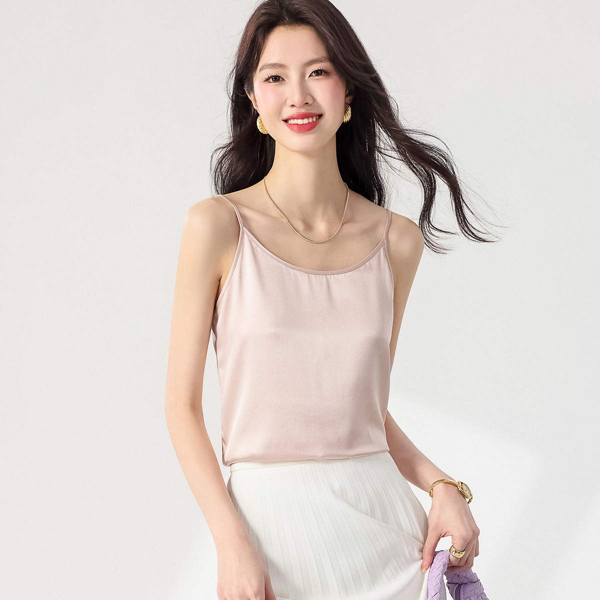 【桑蚕丝】纯色V领桑蚕丝背心吊带无袖内搭衬衣 622227