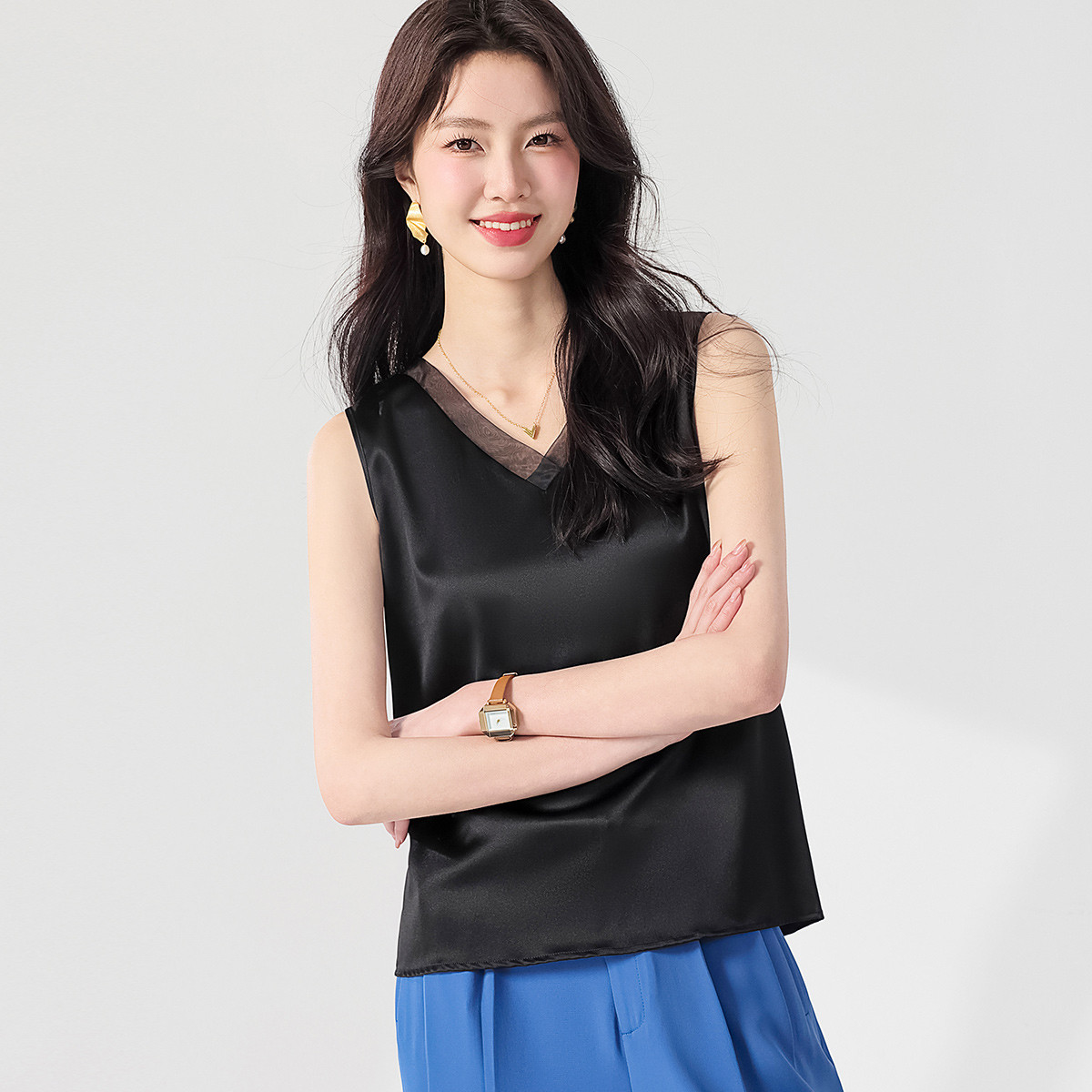 【16姆米】纯色V领桑蚕丝背心吊带无袖衬衣内搭 732115