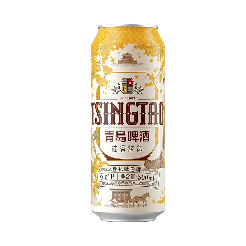 青岛啤酒 桂花味白啤9度500ml*12罐牛卡包提盒装罐啤