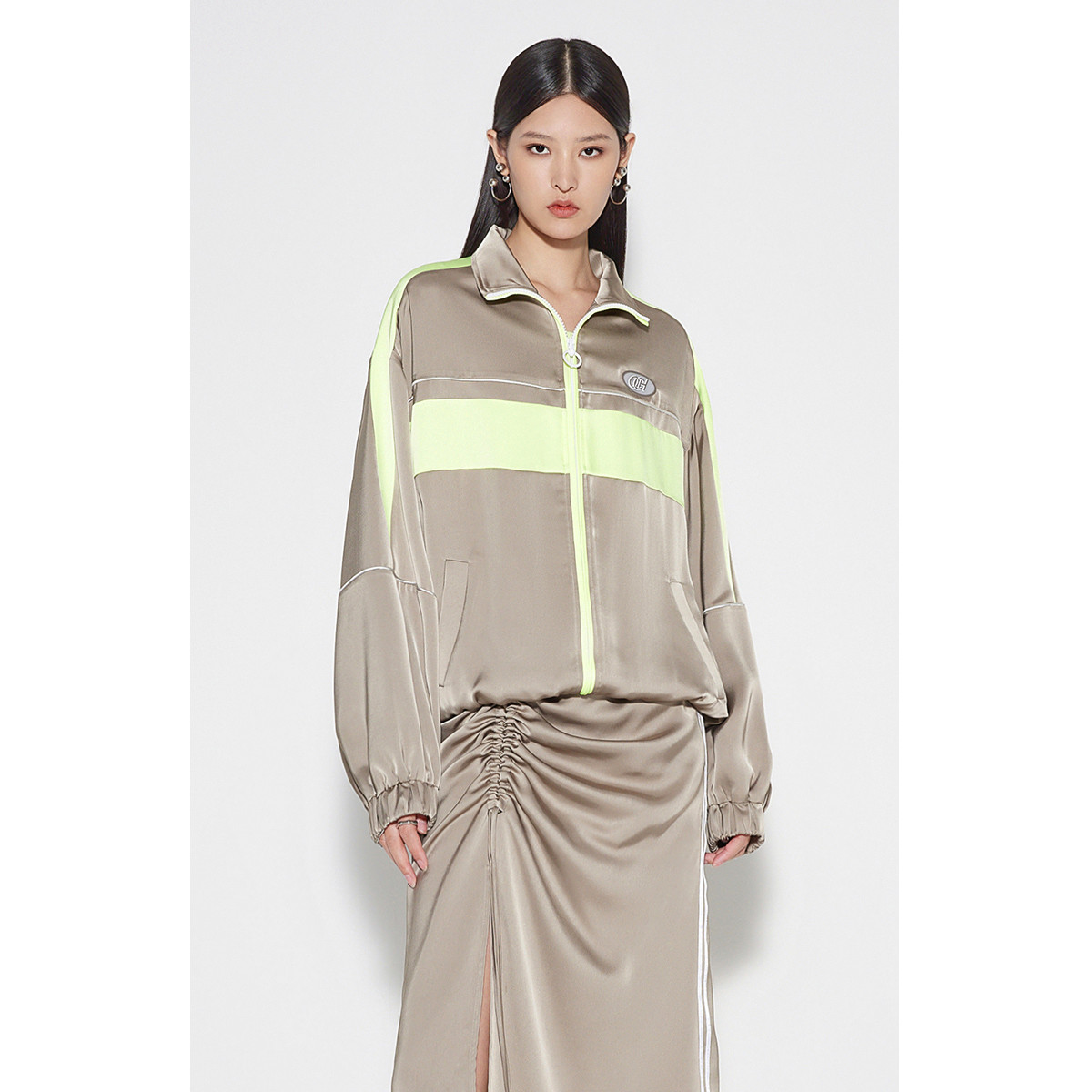 黑标系列 春装宽松运动风仿醋酸双面缎外套女 673423
