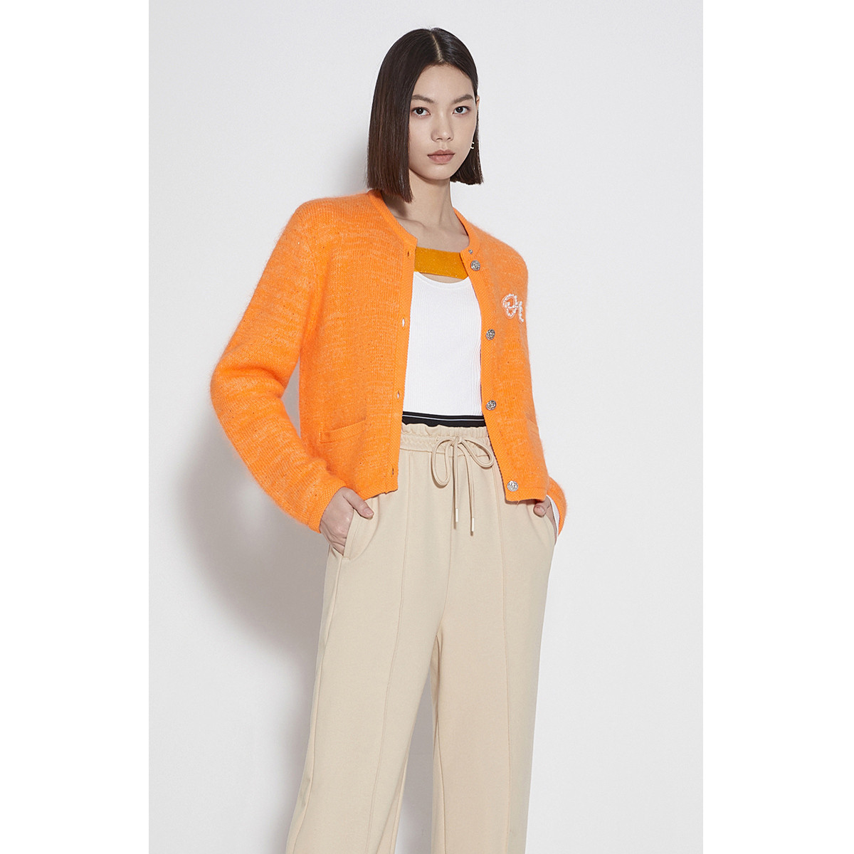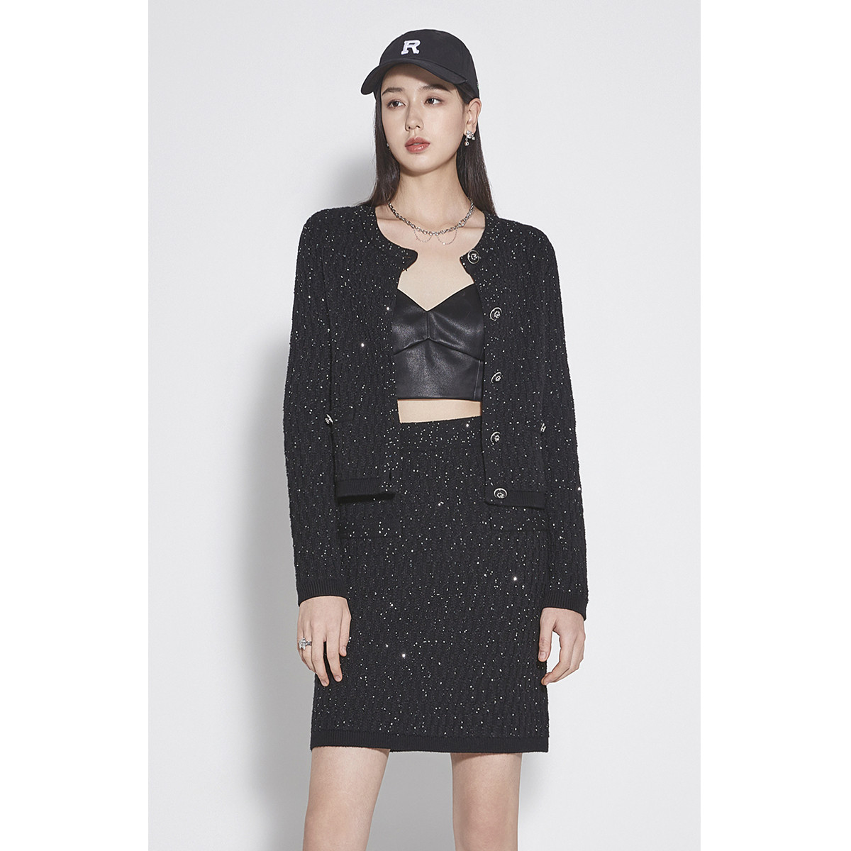 黑标系列 春装毛衣千金风小香风珠片针织外套女 468623