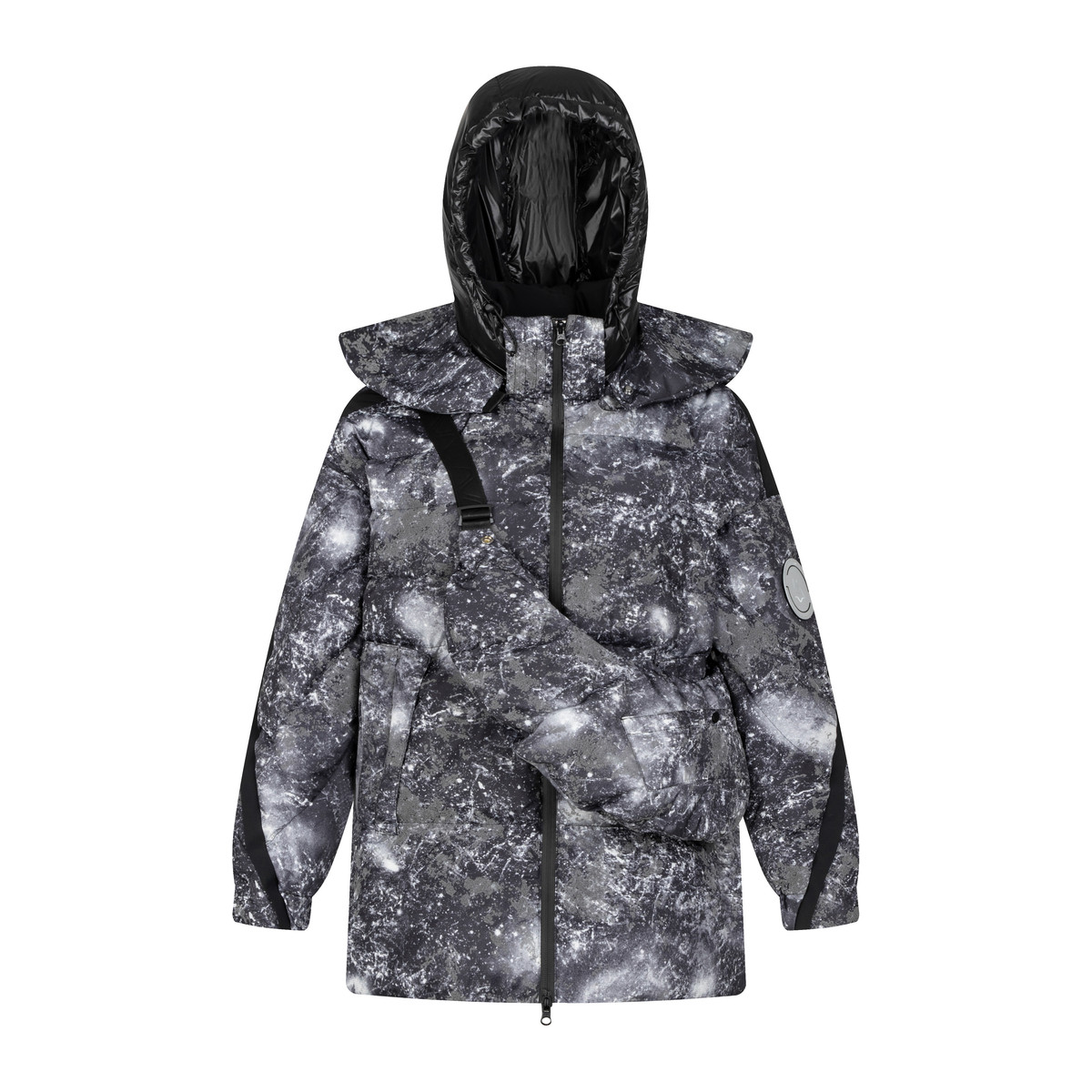 可调节帽子专柜同款印花鹅绒羽绒服女反季特卖户外运动工装外套 377622