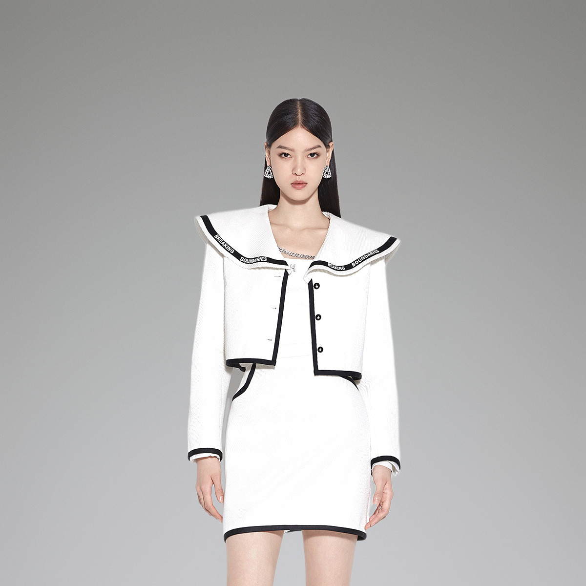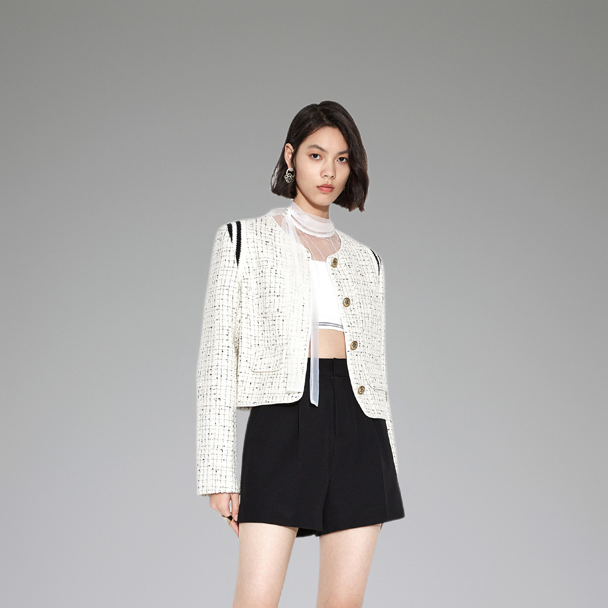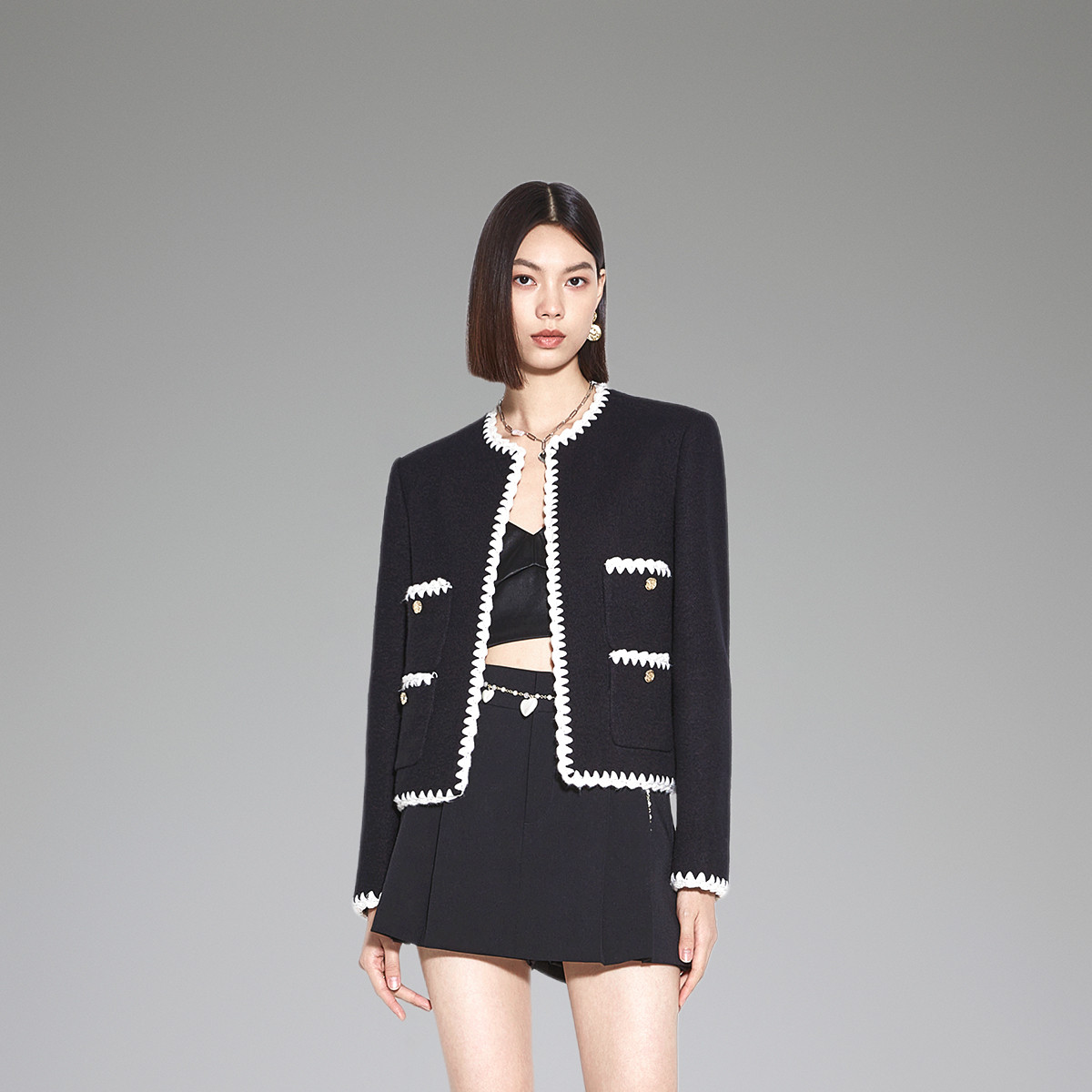黑标系列春装 撞色织带羊毛磨毛呢小香风外套女 250319