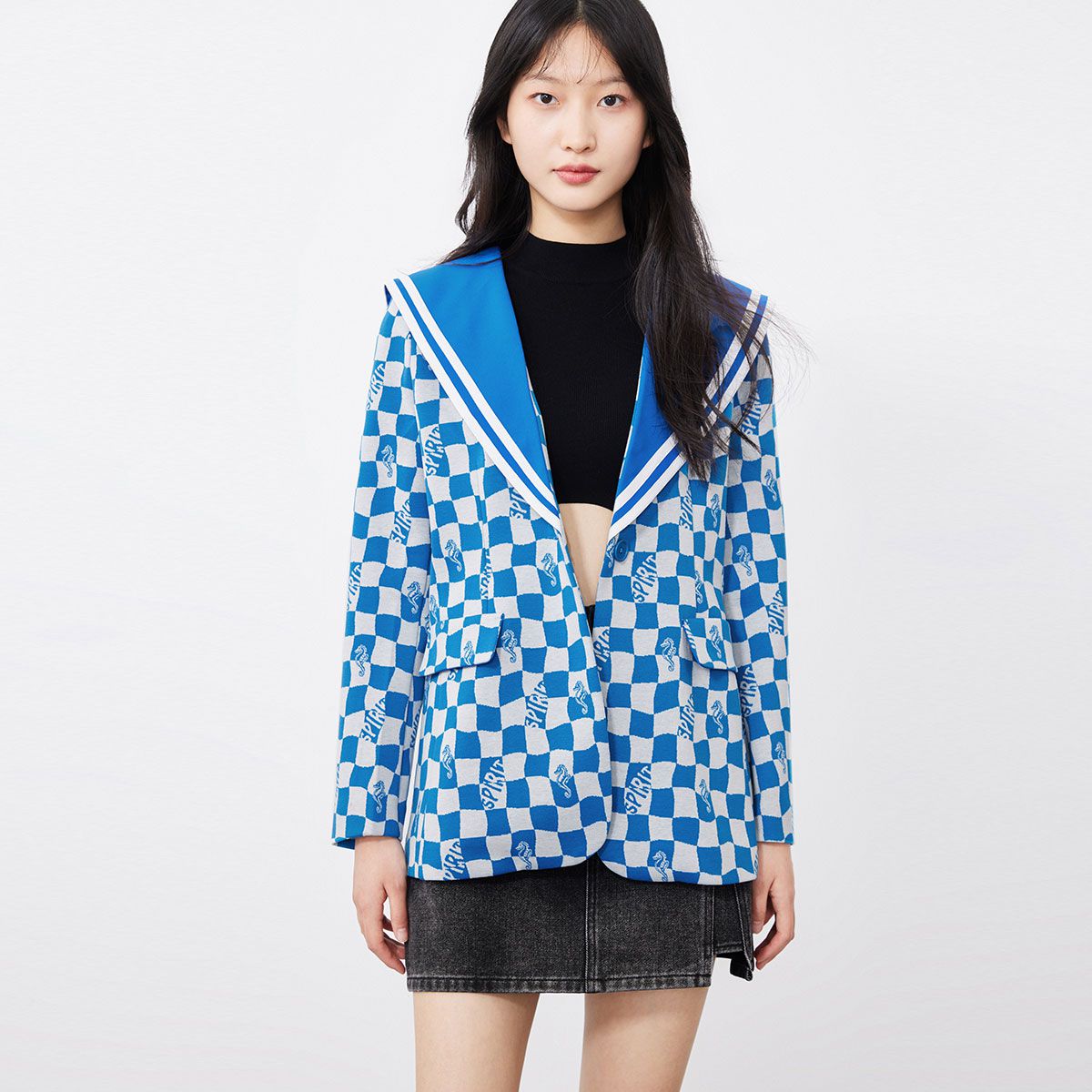 【春秋款】棋盘格海军翻领夹克西装外套女 335761