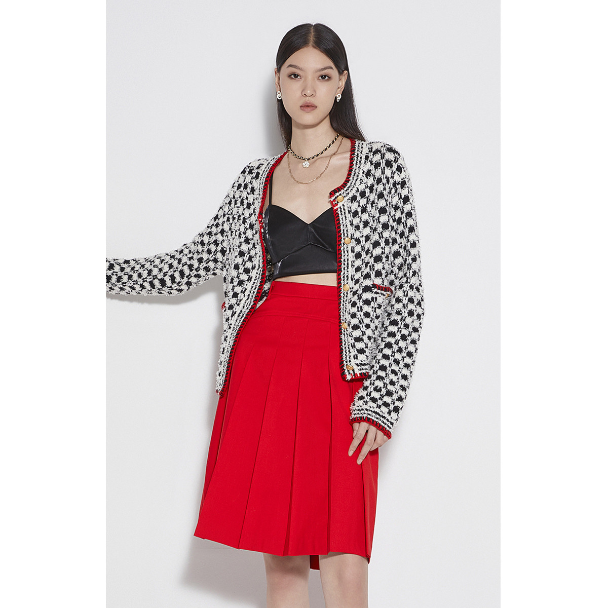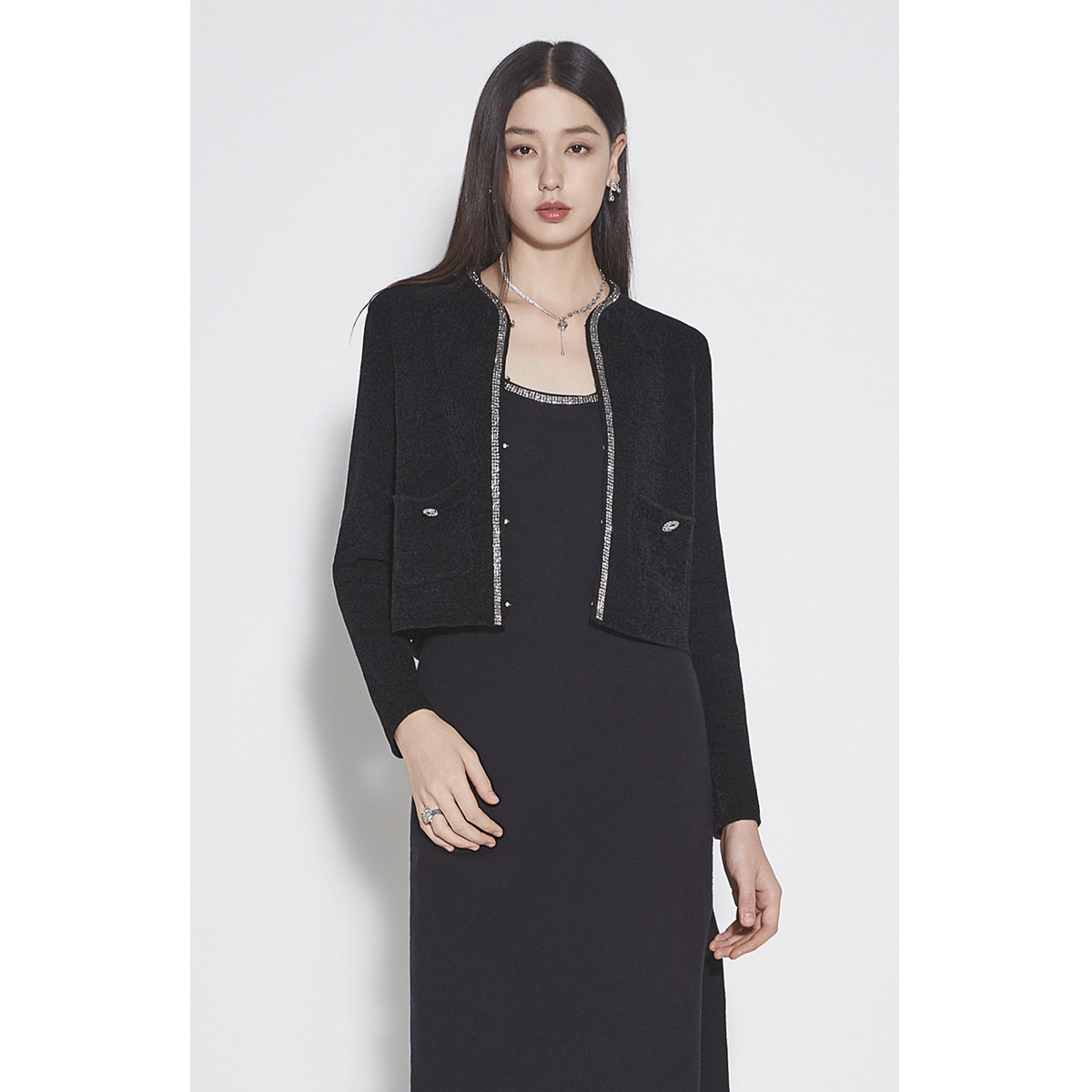 黑标系列 春装毛衣千金风小香风金丝绒针织外套女 597199
