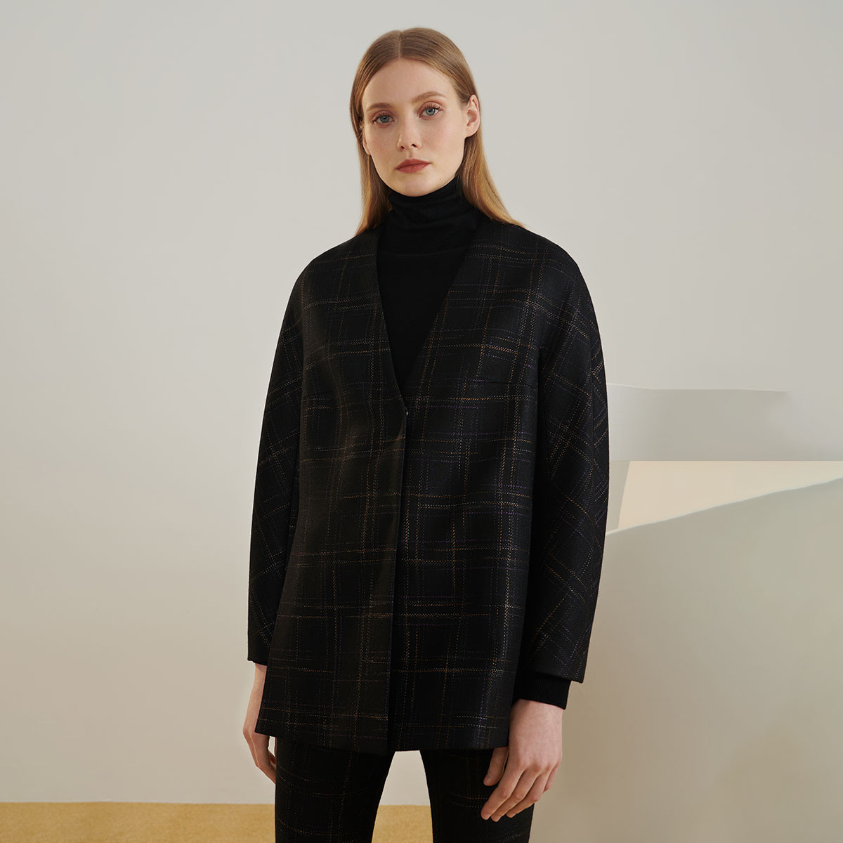 朗姿纯羊毛复古双面呢夹克高级感正肩毛呢冬季上衣 447257