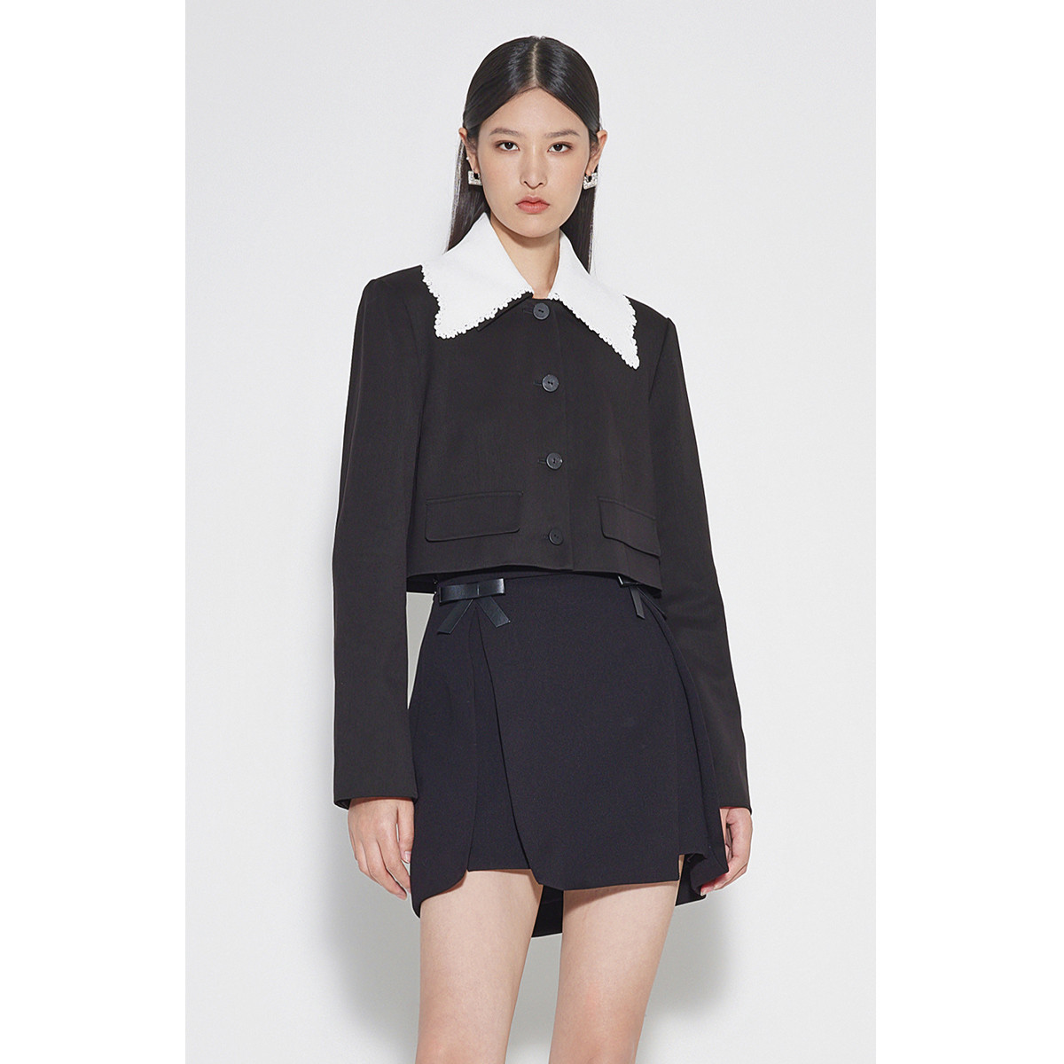 春装 娃娃领短款西装外套女通勤法式千金风 550799