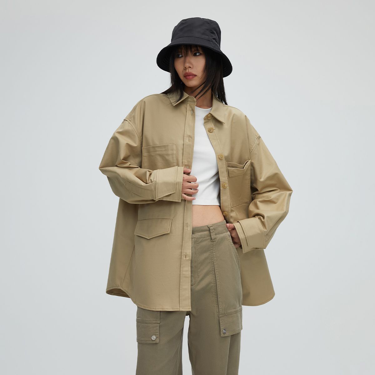 【大口袋设计】春季百搭中长款宽松翻领外套女 624154