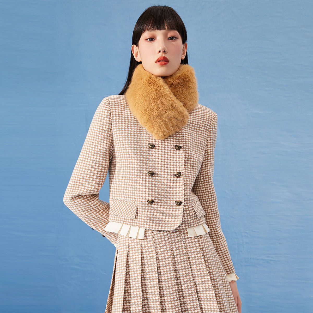 【春秋美拉德】【泰迪熊联名】直筒千鸟格双排扣长袖气质外套 348881