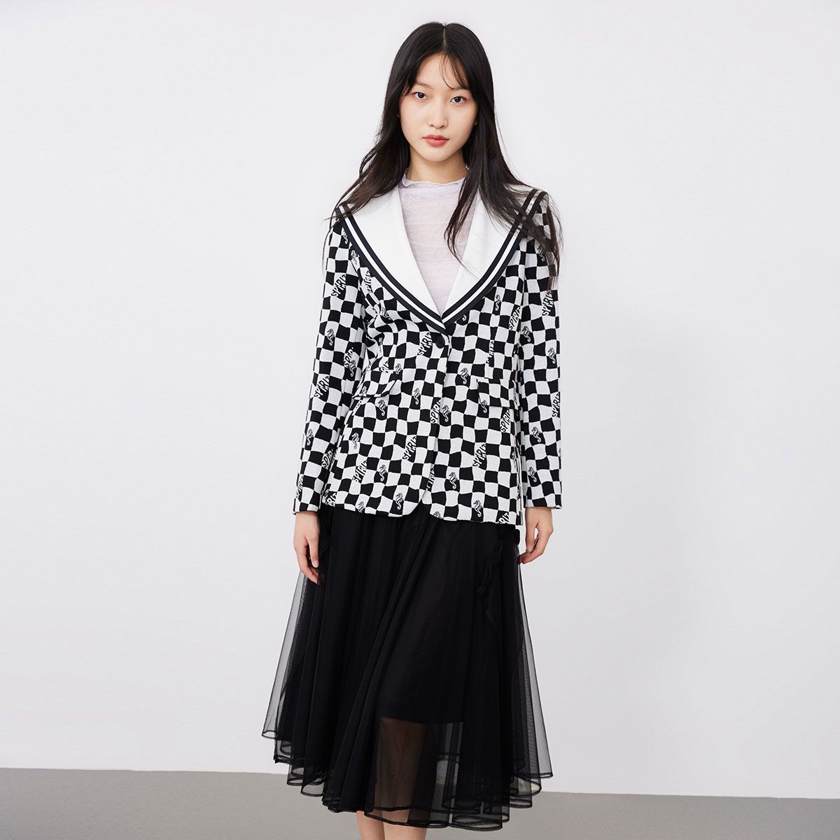 【春秋款】棋盘格海军翻领夹克西装外套女 278417