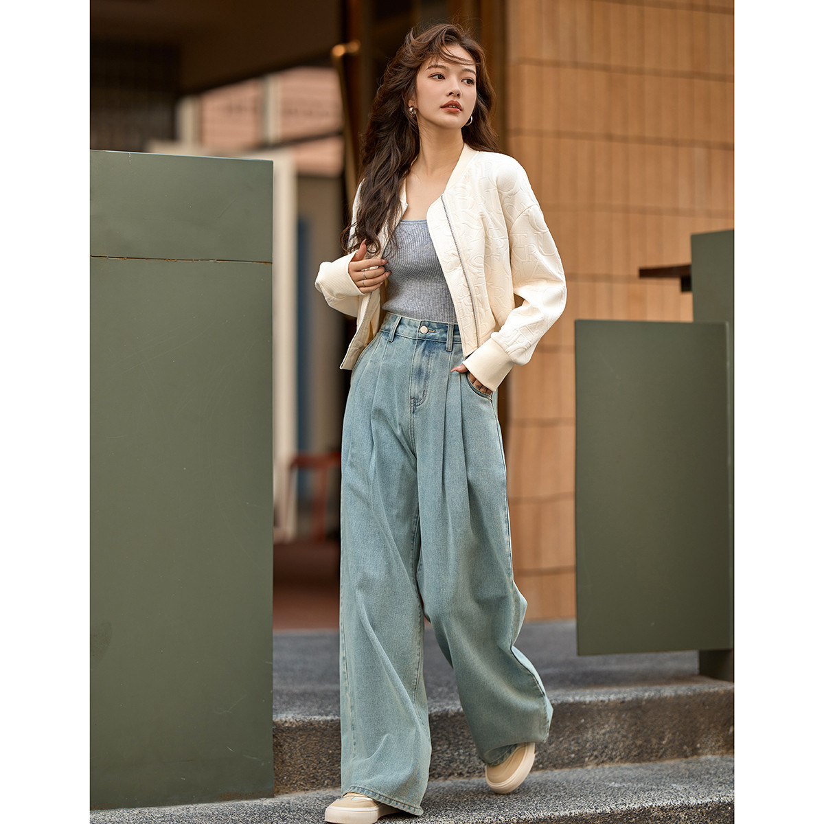 【不易褪色牛仔】春秋款女装显瘦水洗长袖牛仔外套女宽松上衣长款 396033