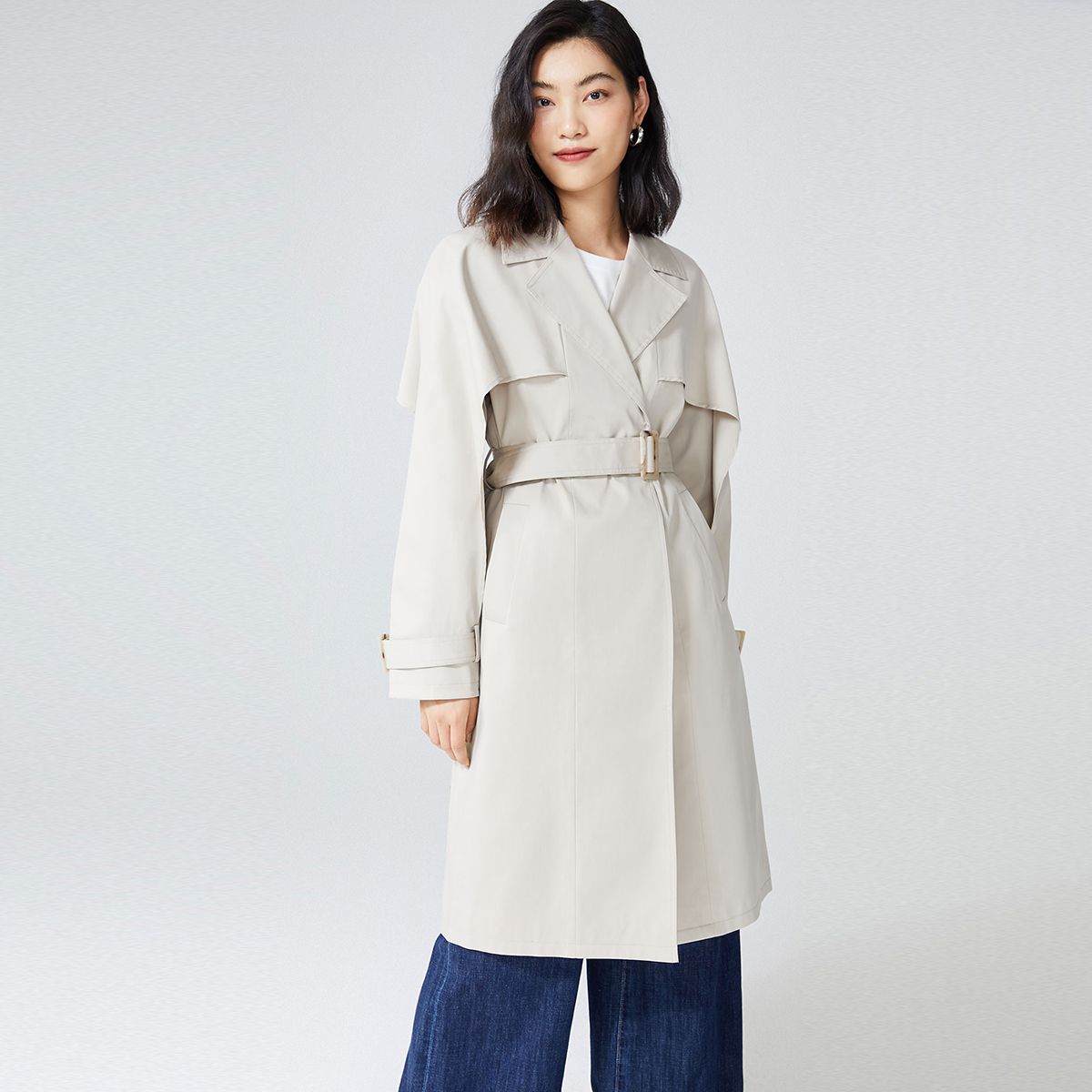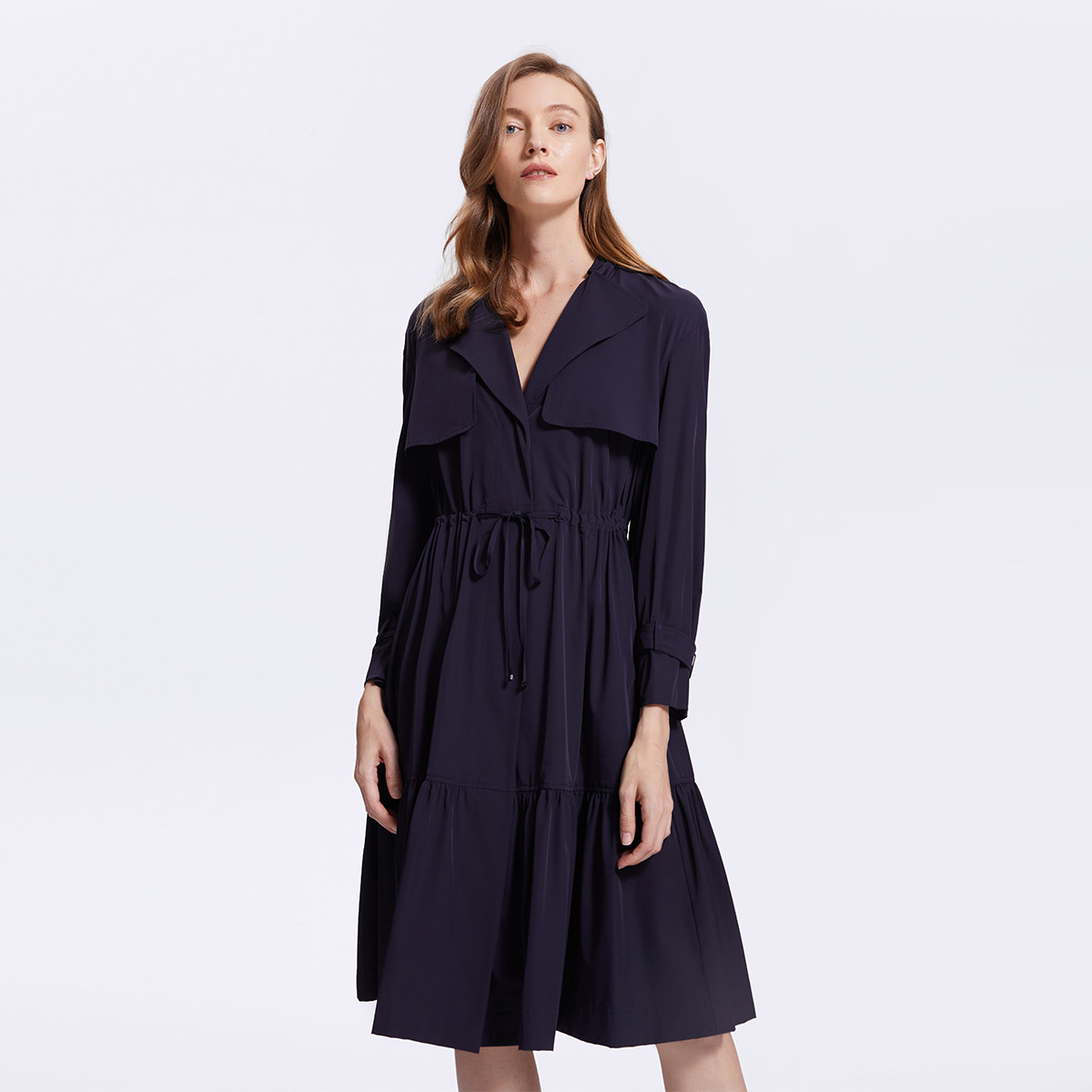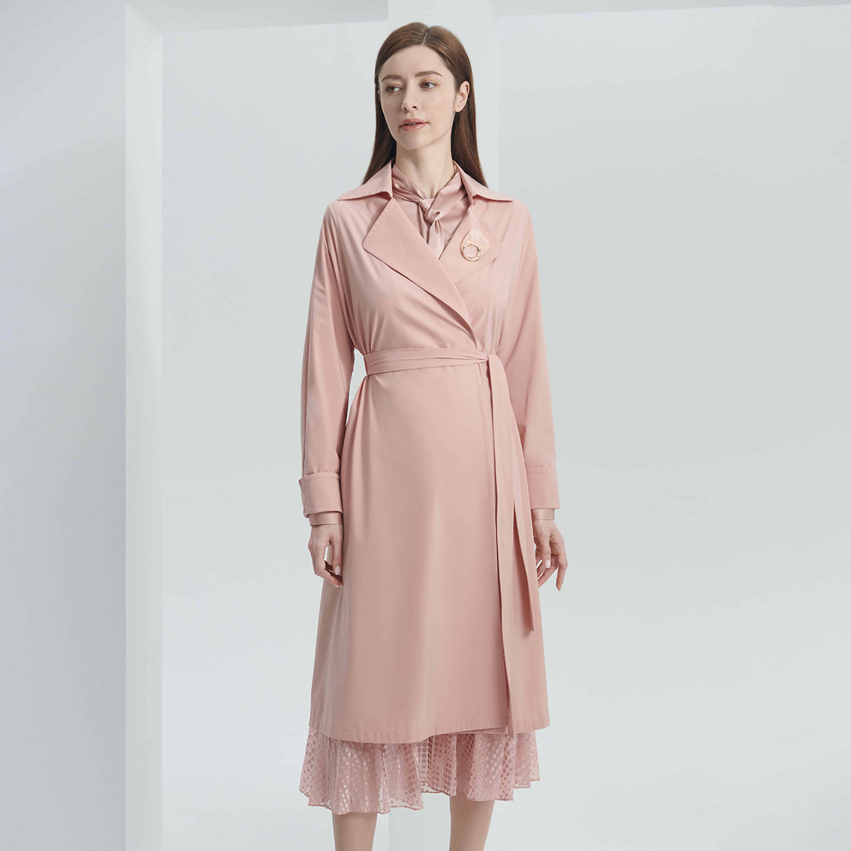 女装温柔淑女甜美长袖舒适中长收腰风衣 536330