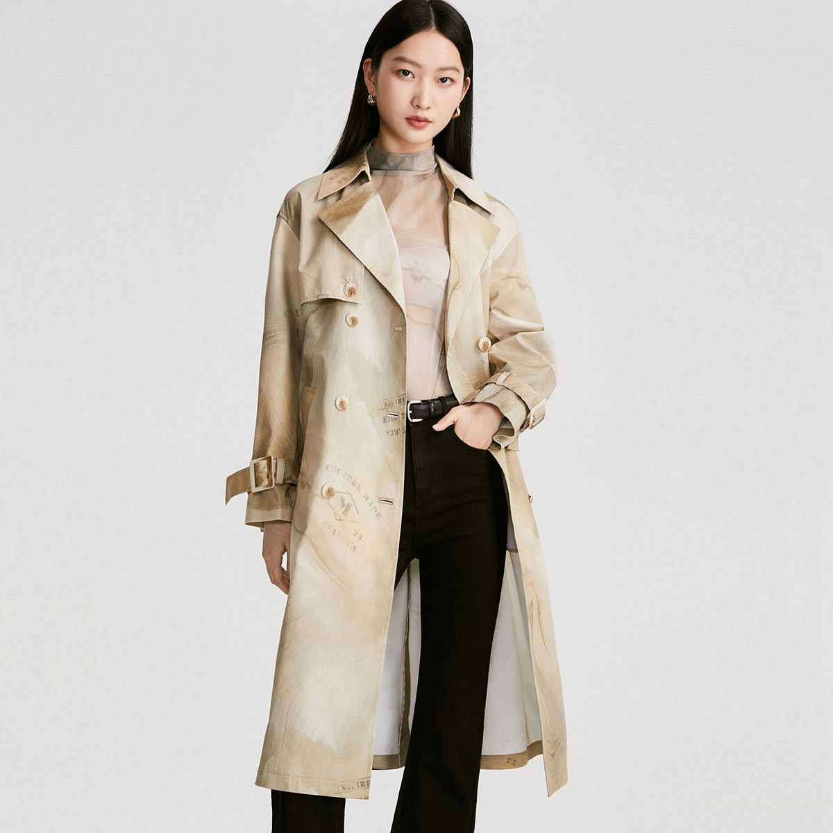 【春夏美拉德】【廓形风衣】专柜同款优雅印花宽松外套女百搭时尚 660177