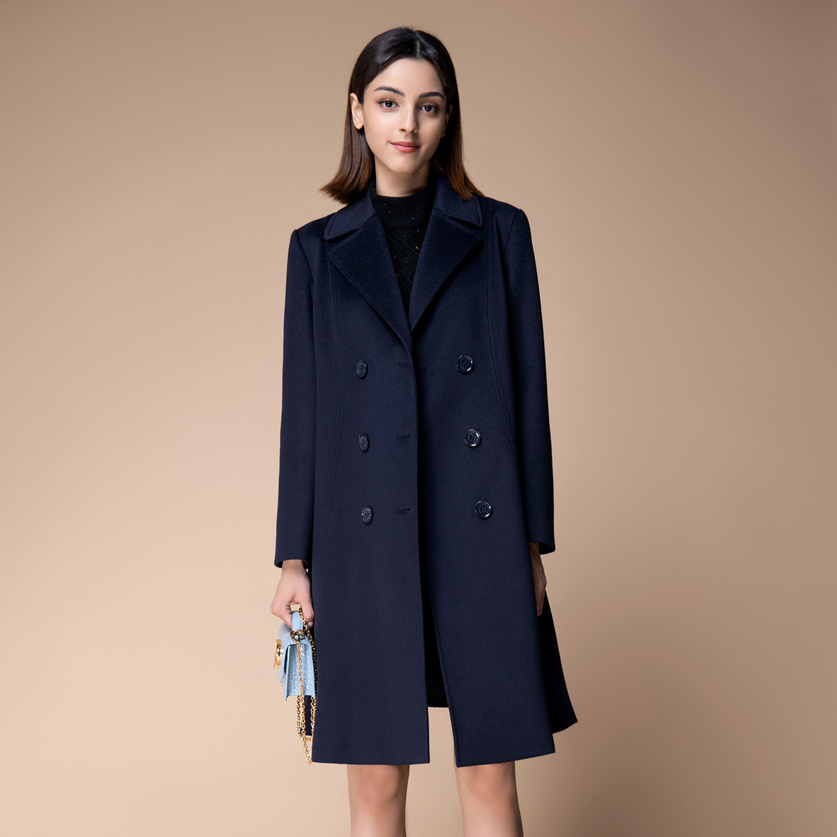 朗姿纯羊毛复古双面呢夹克高级感正肩毛呢冬季上衣 447257
