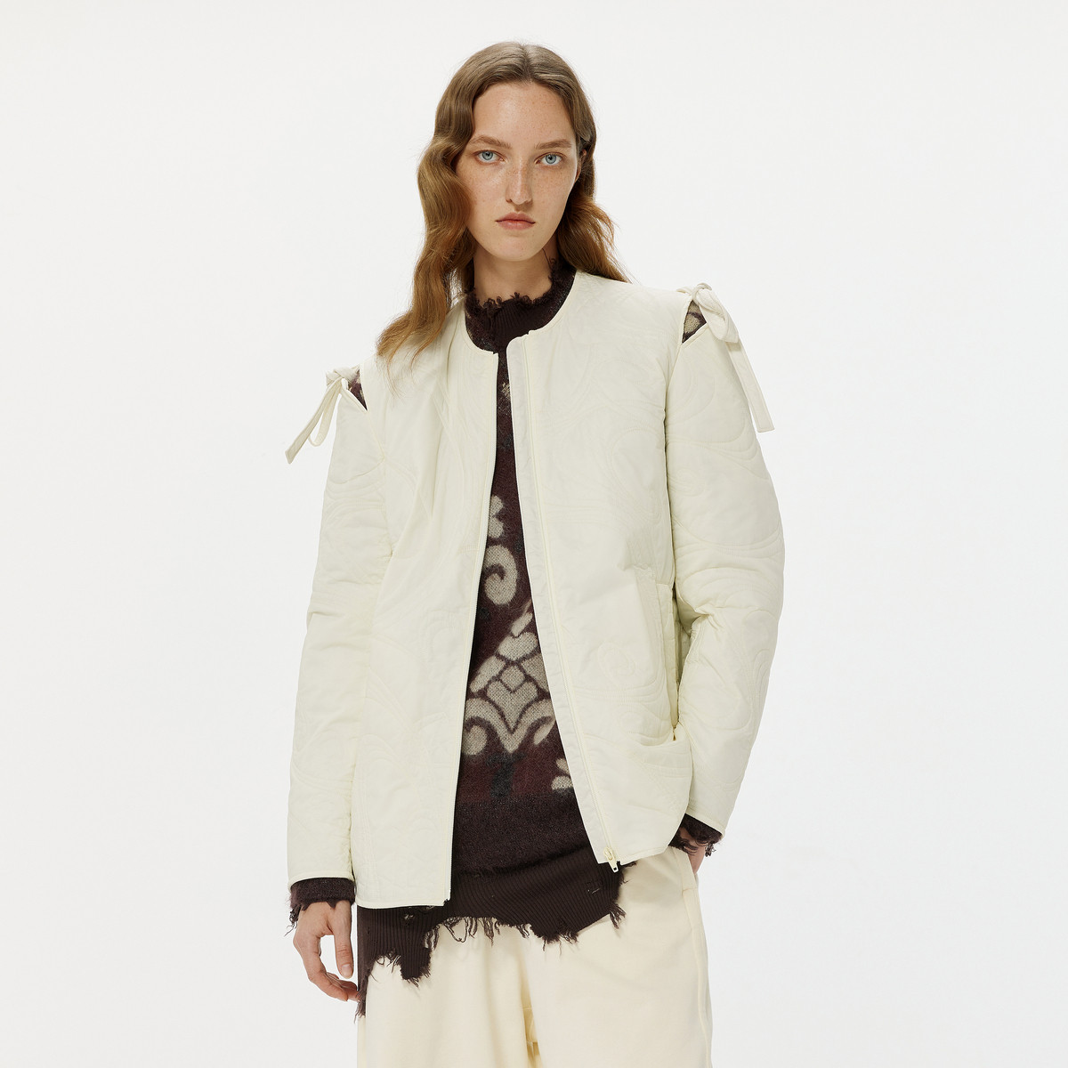 秋棉衣无领宽松系带H型上衣女 713995