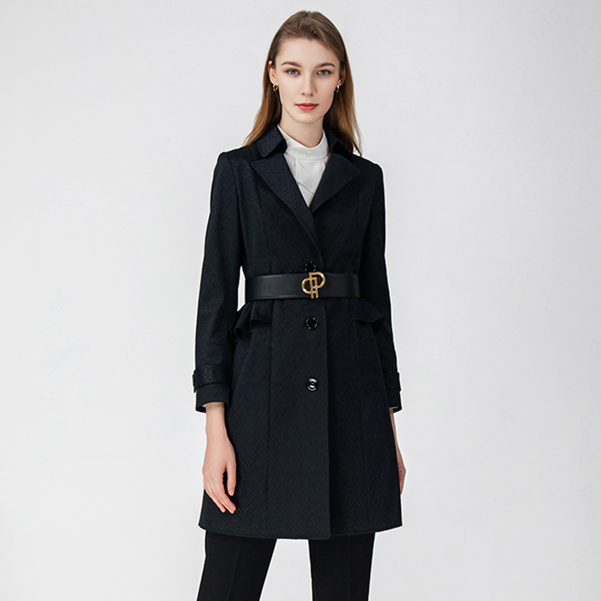 PORTS宝姿女装气质修身时尚长袖中长风衣 375498