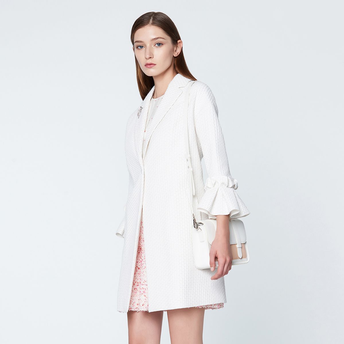宝姿女装秋季气质优雅一粒扣印花双面呢大衣 780810