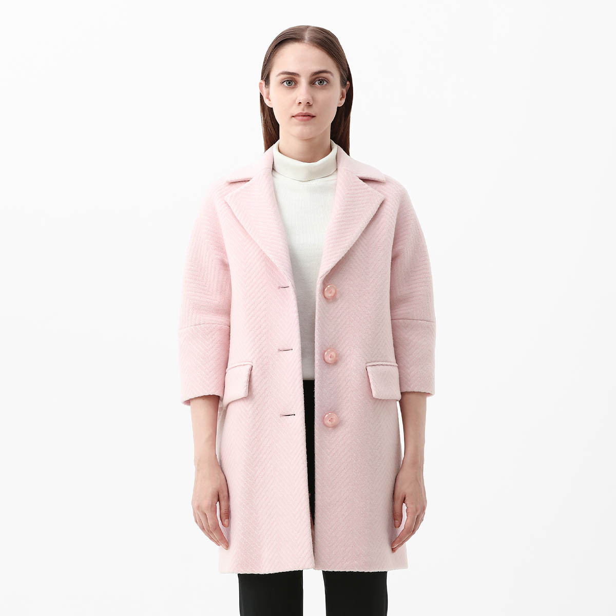 宝姿女装秋冬通勤修身毛呢大衣女粉色呢子外套 902730