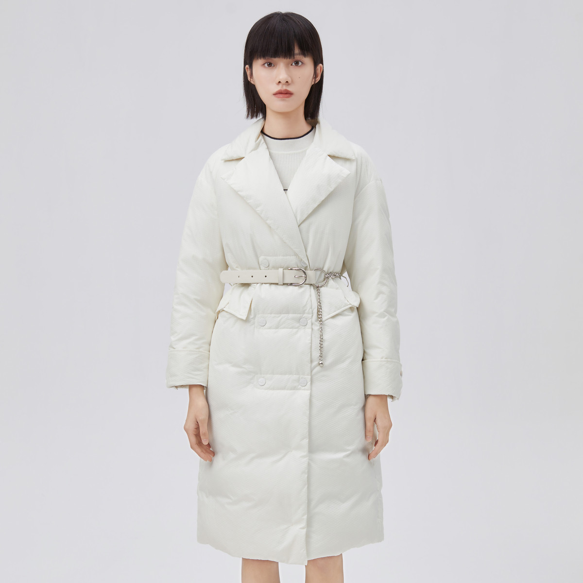 【专柜同款】精致收腰鸭绒外套女西装翻领羽绒服女中长款 768022