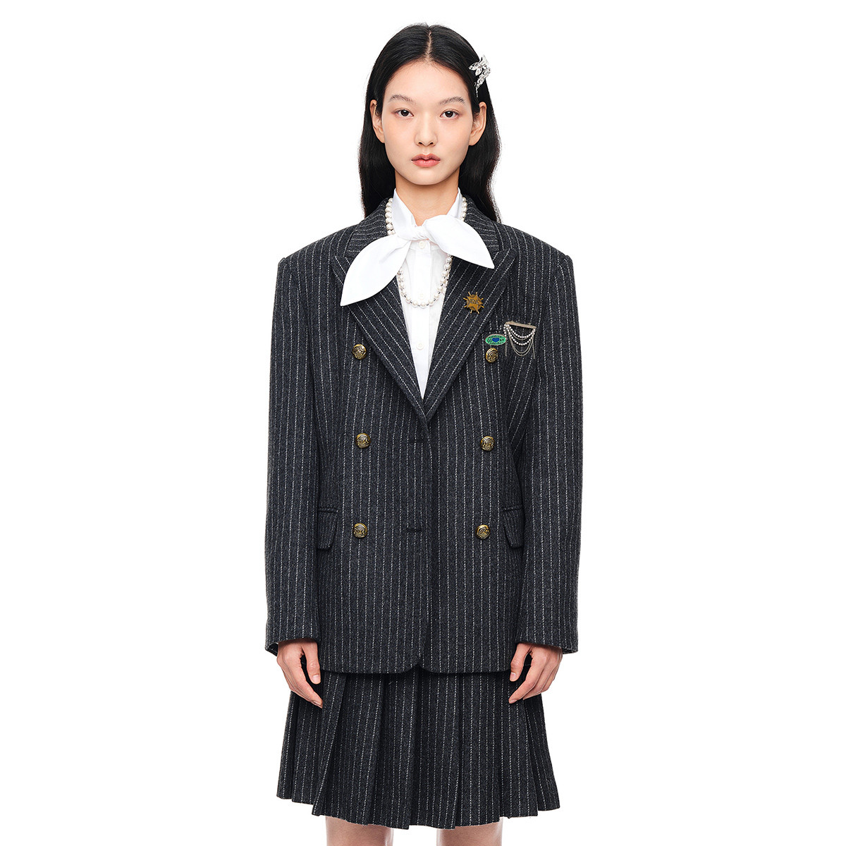 商场同款春季复古日系巴洛克西装撞色领烫钻微修身外套 373343