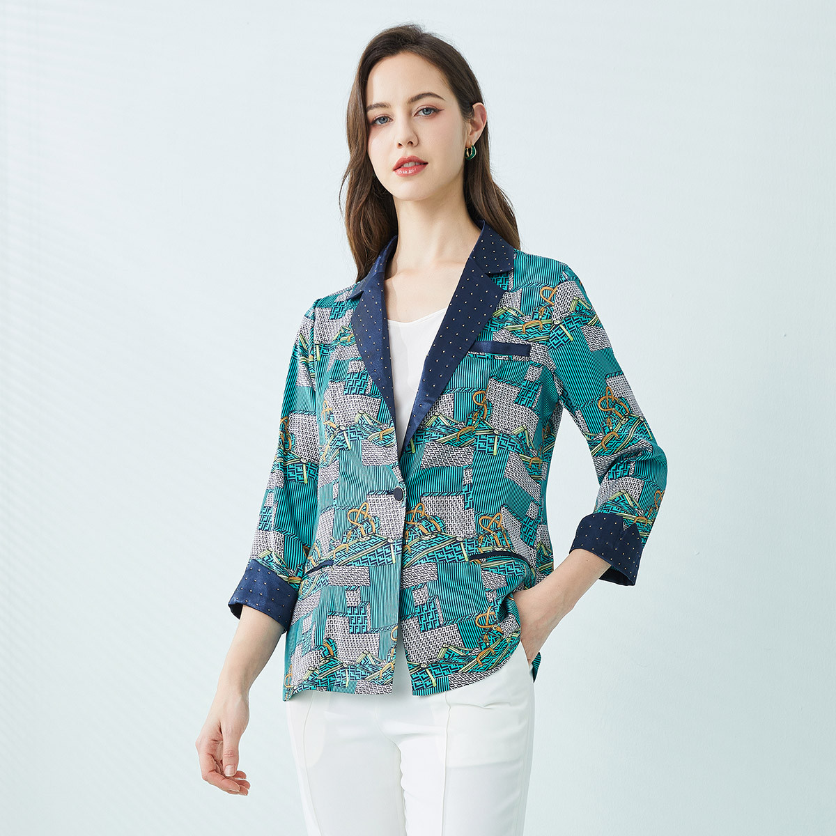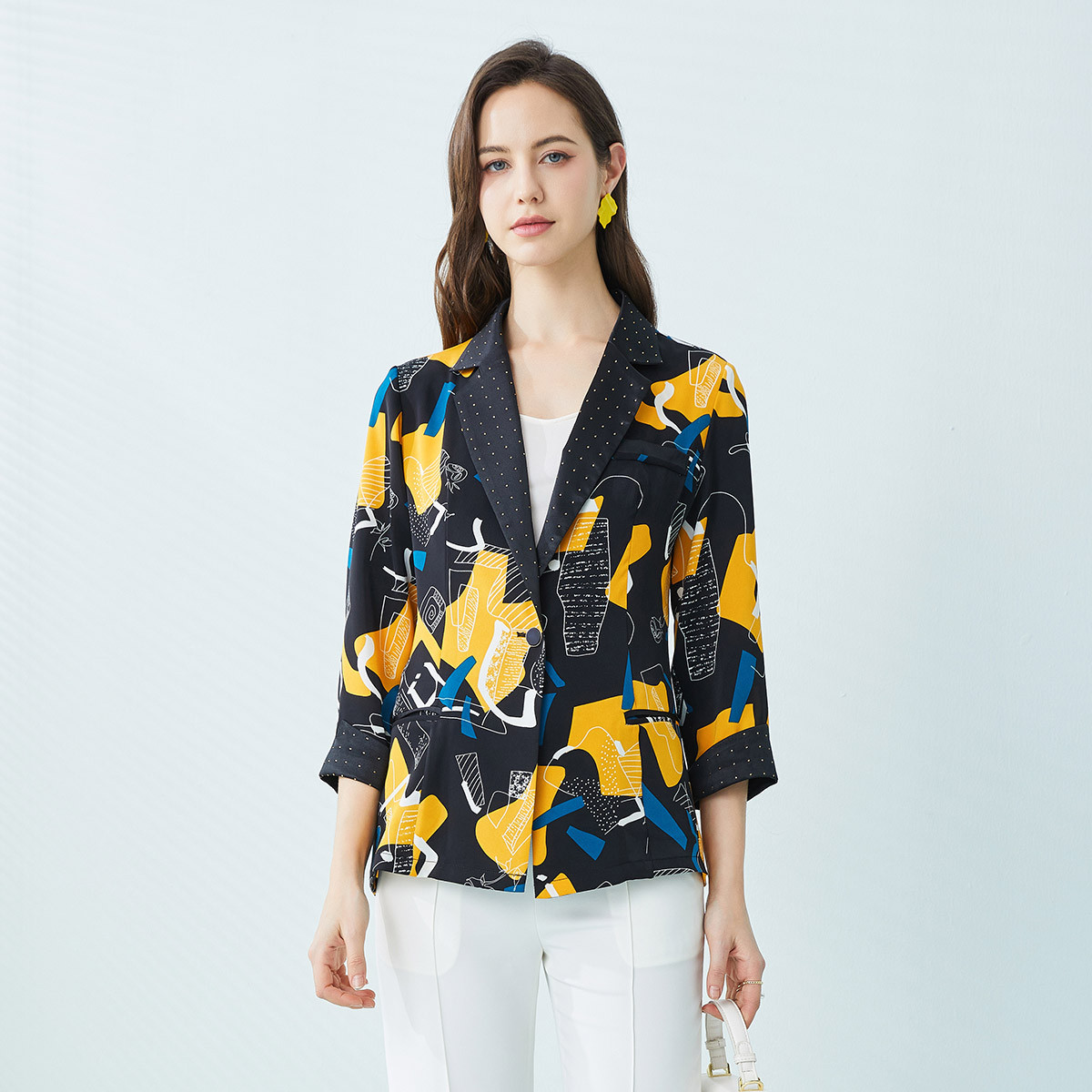 商场同款春季文艺不规则印花帅气风精致西装上衣外套 089759