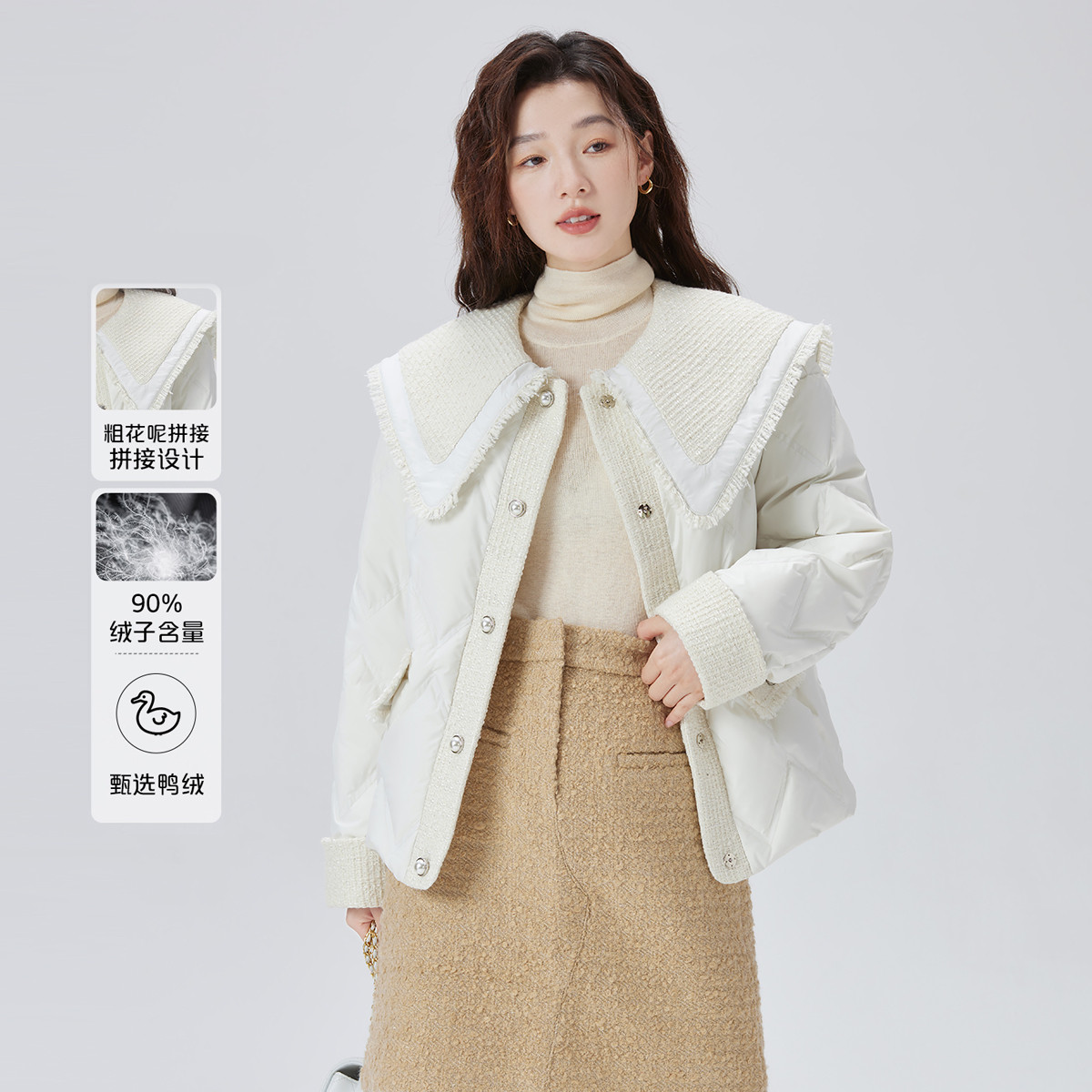 【畅销爆款】气质小香风羽绒服女短款时尚粗花呢翻领鸭绒服外套女 507222