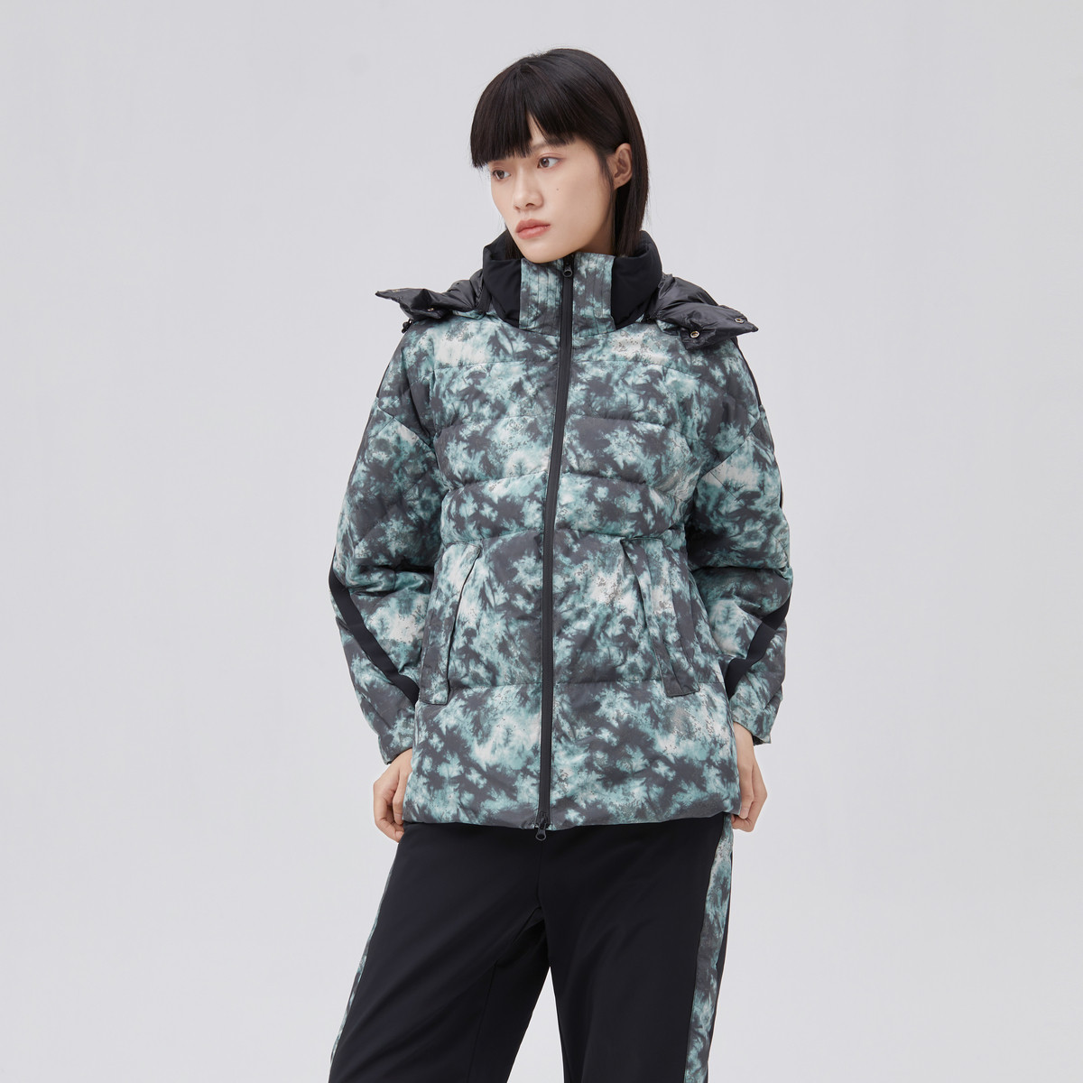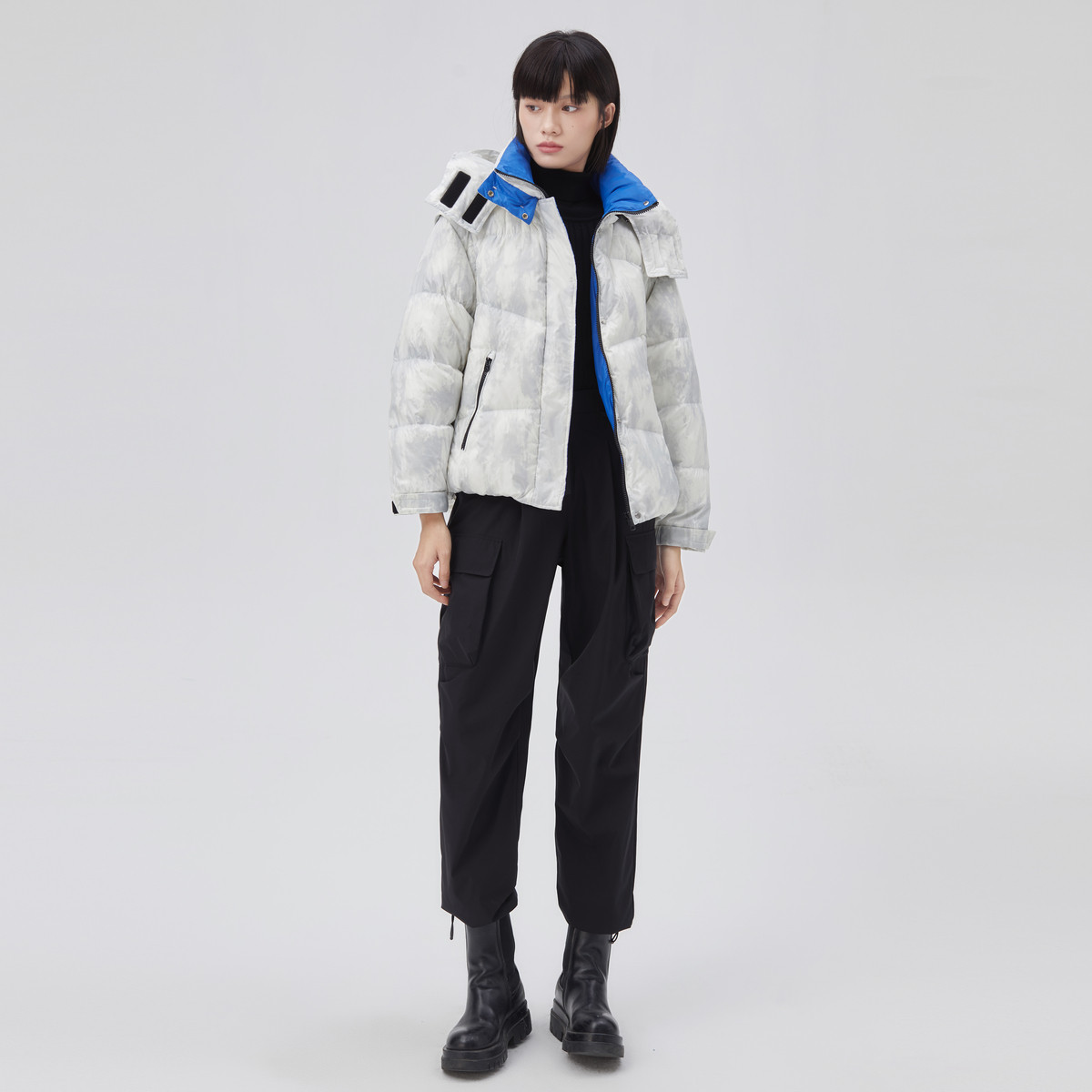 可调节帽子专柜同款印花鹅绒羽绒服女反季特卖户外运动工装外套 389910