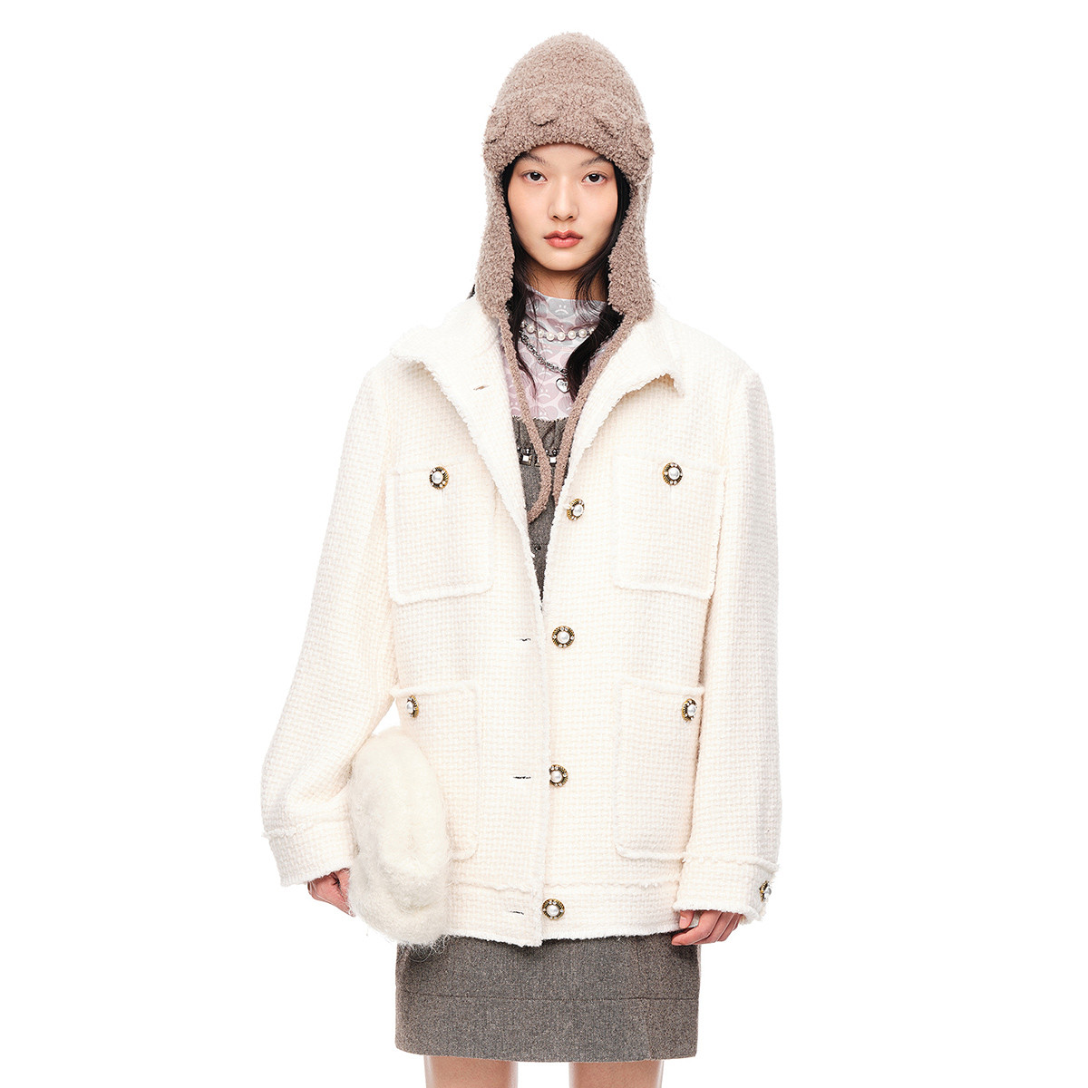 地素春秋季专柜粗花呢香风通勤气质呢料大衣 850827