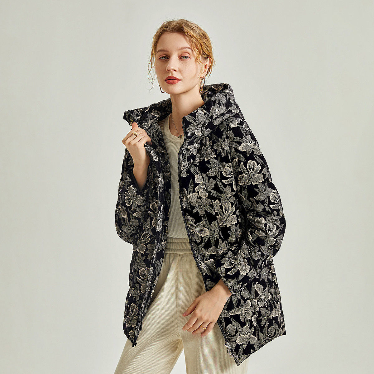 【鹅绒】植绒提花女式休闲羽绒服优质鹅绒厚款大码妈妈装 411935