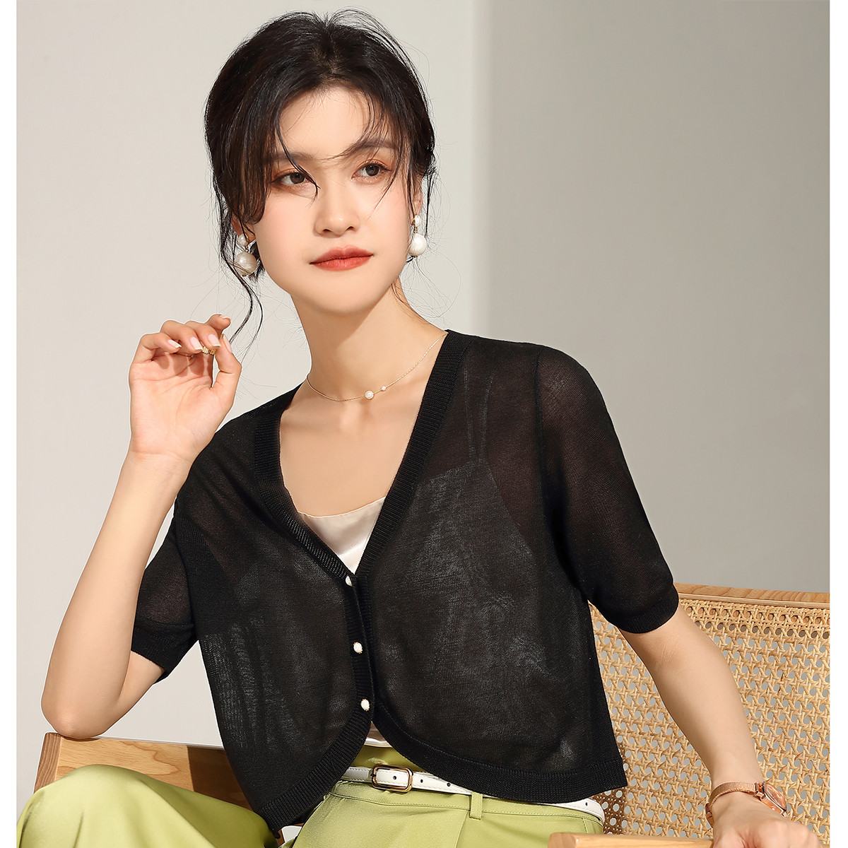 【含桑蚕丝含莱赛尔】夏季外套女薄款披肩外搭镂空空调衫外套女夏 238047