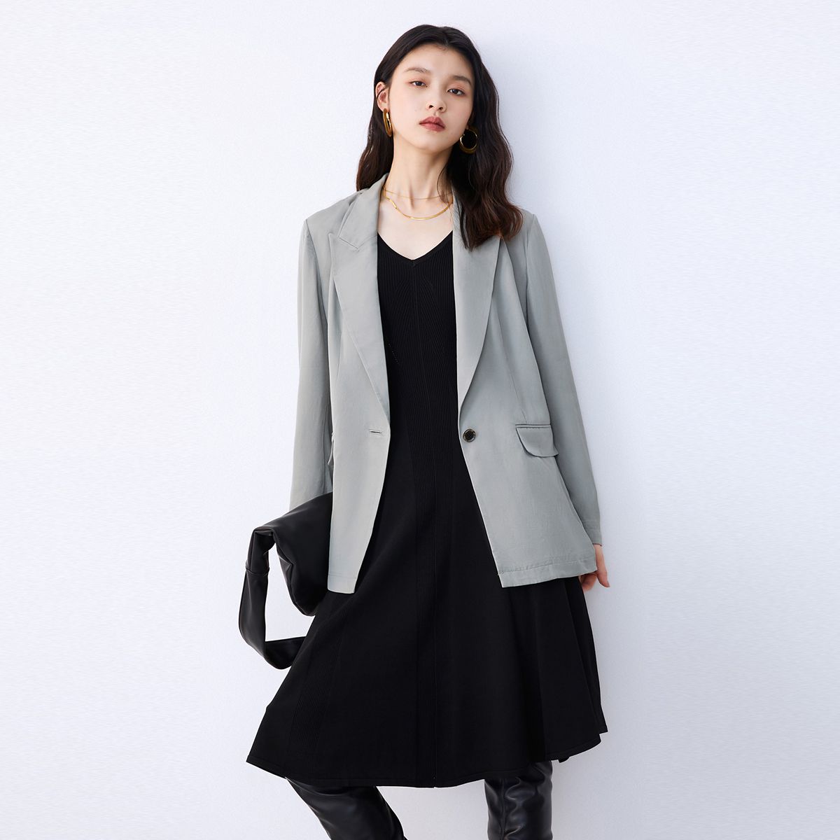 【三粒扣袖扣】优雅气质通勤宽松纯色长袖西服外套女 893905