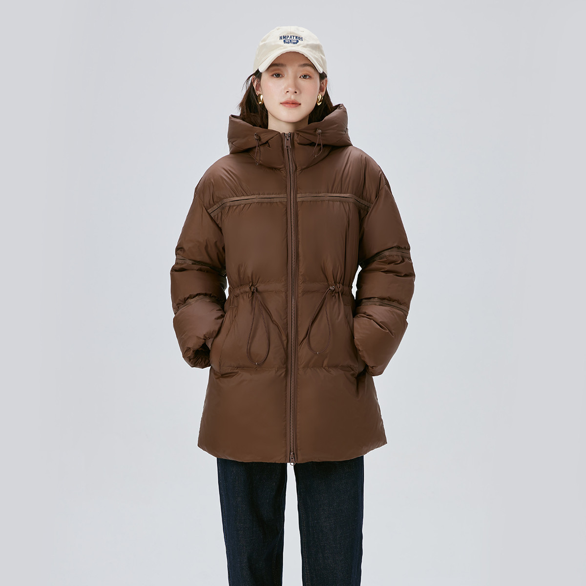 【90鸭绒】宽松中长款翻领收腰时尚保暖羽绒服女 578646