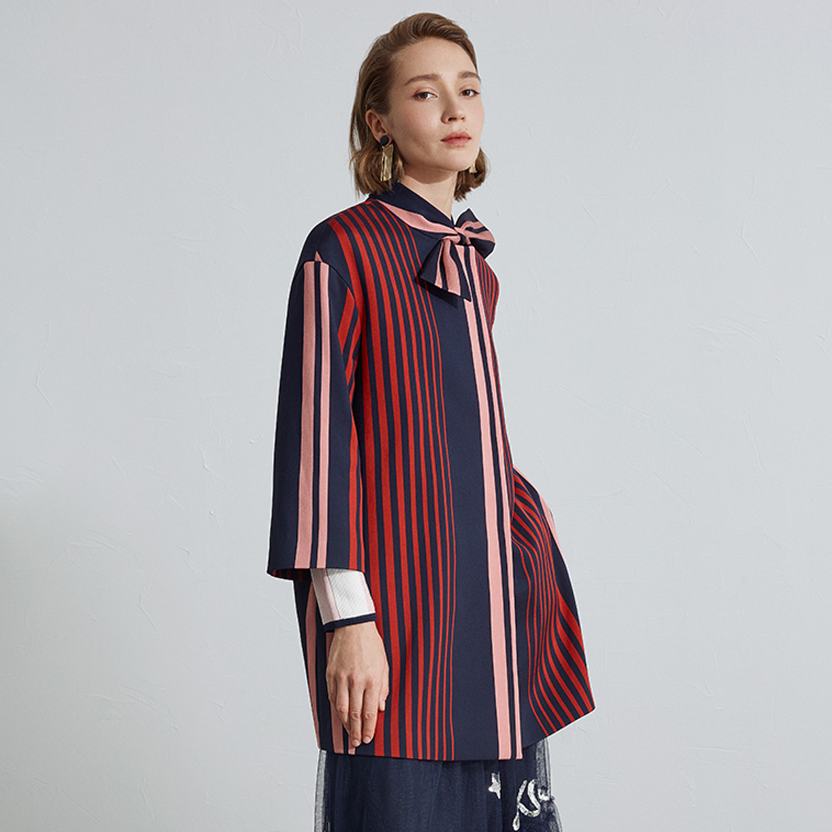 宝姿女装时尚条纹撞色通勤休闲日常百搭外套 206346