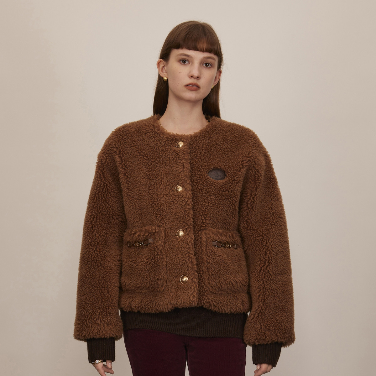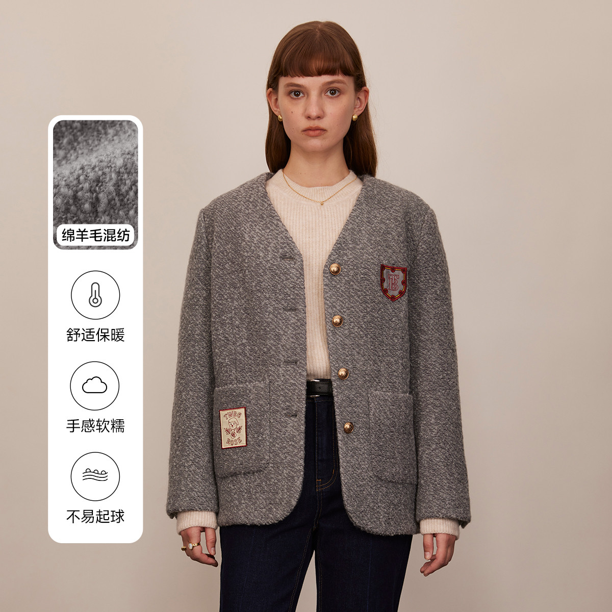 小熊春秋款小香风绵羊毛保暖圆领舒适外套女 968001