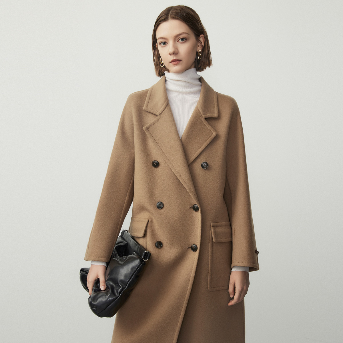 【王楚然同款】纯羊毛双面呢中长款毛呢外套冬季大衣 996569