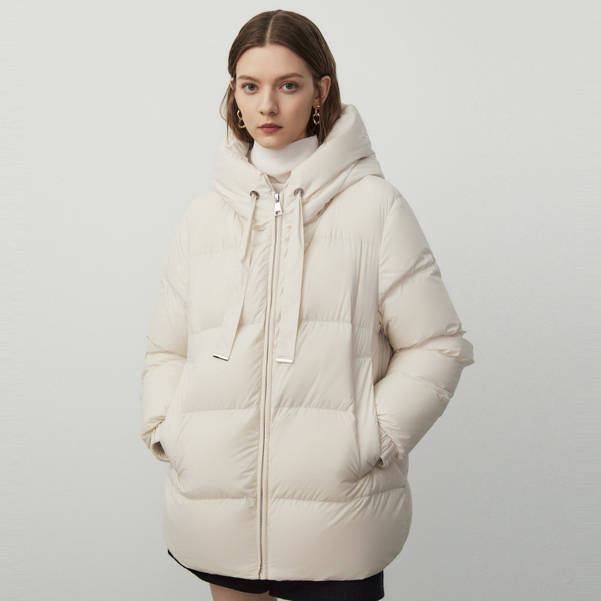 白鹅绒连帽高级感冬季面包服羽绒服外套气质上衣女 250841