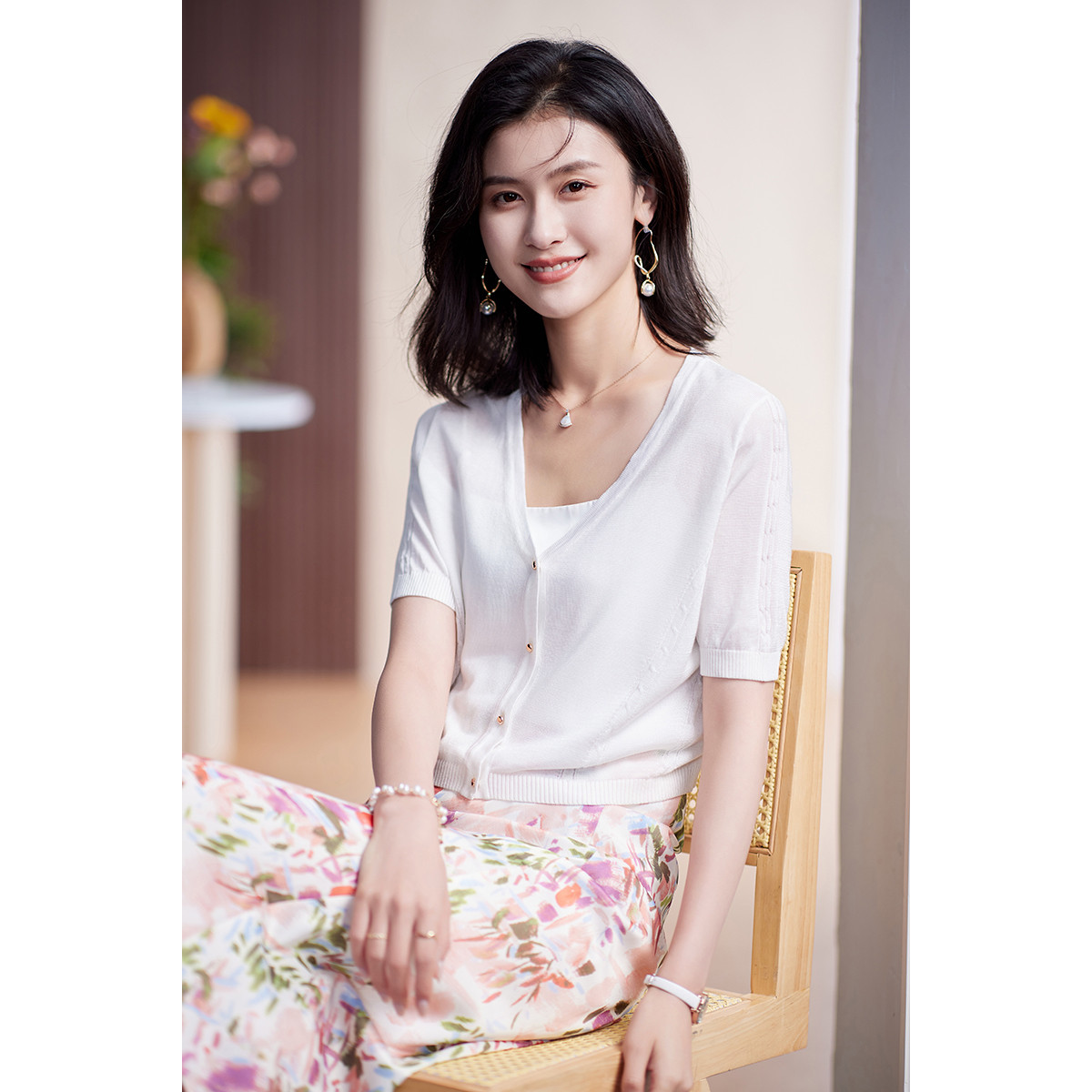 【含桑蚕丝含莱赛尔】夏季外套女薄款披肩外搭镂空空调衫外套女夏 434015