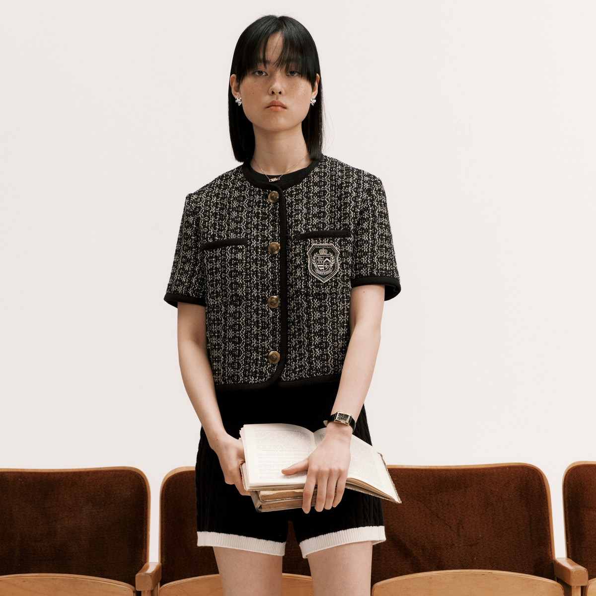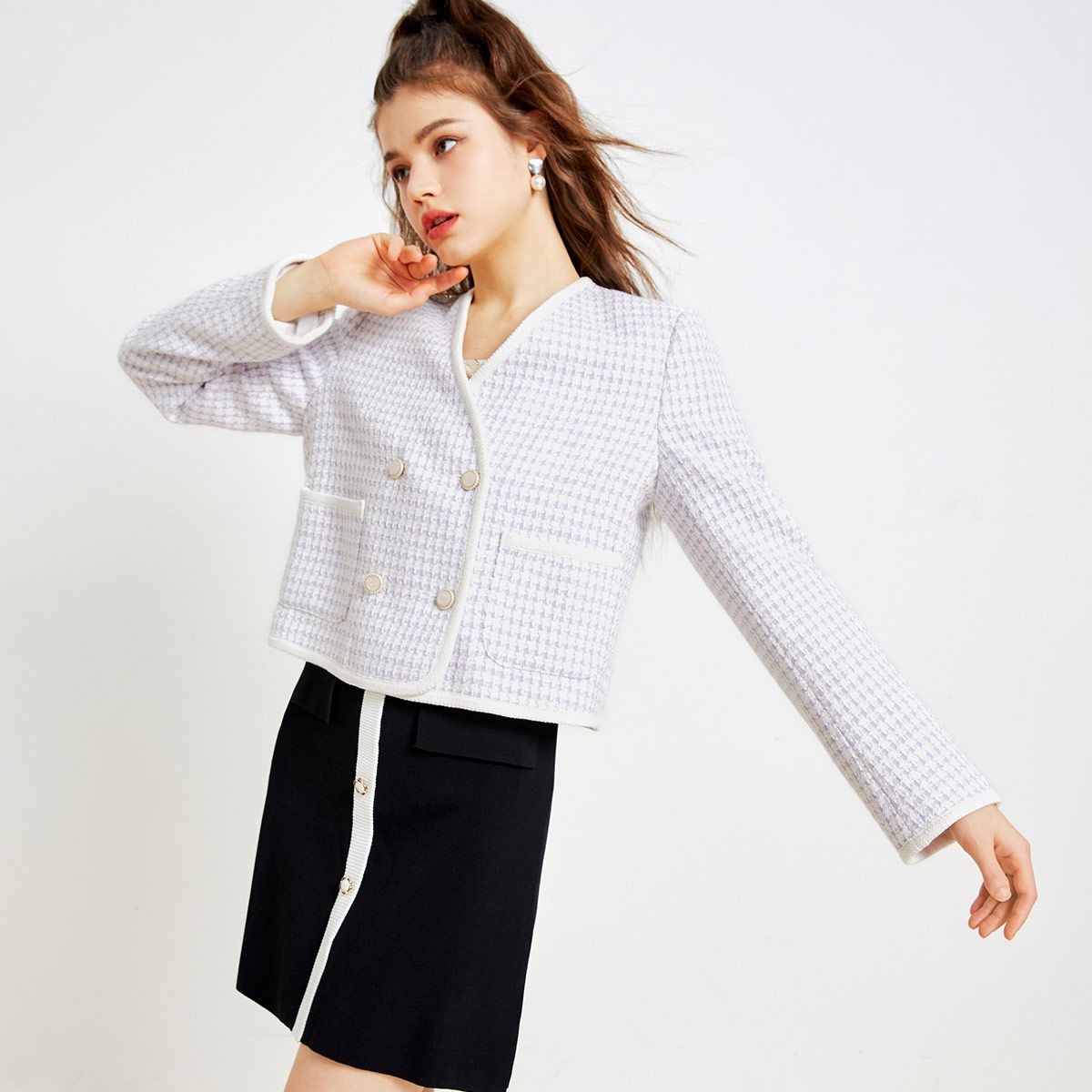地素粗花呢外套春秋季专柜毛边流苏外套女 022987