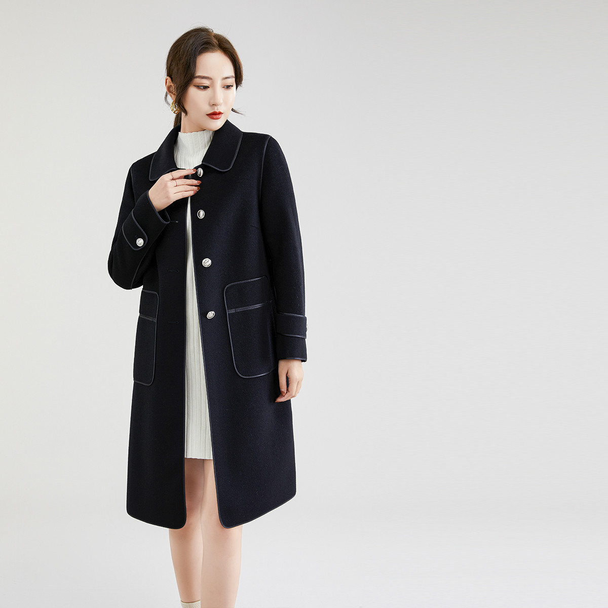 【纯羊毛】秋冬直筒中长大衣女双面呢100%绵羊毛大衣外套 859103