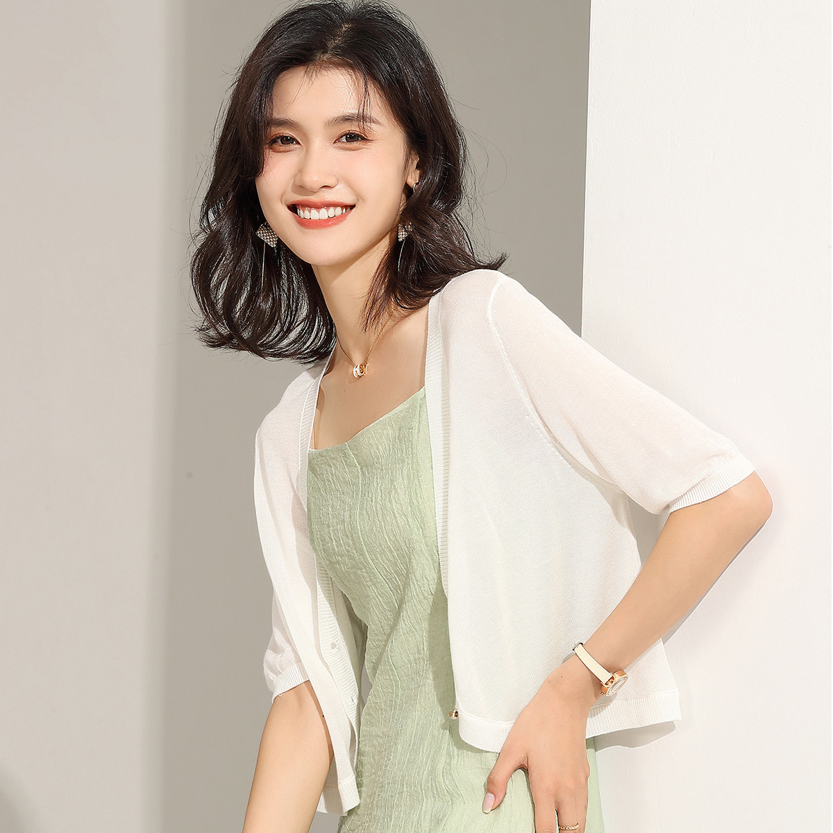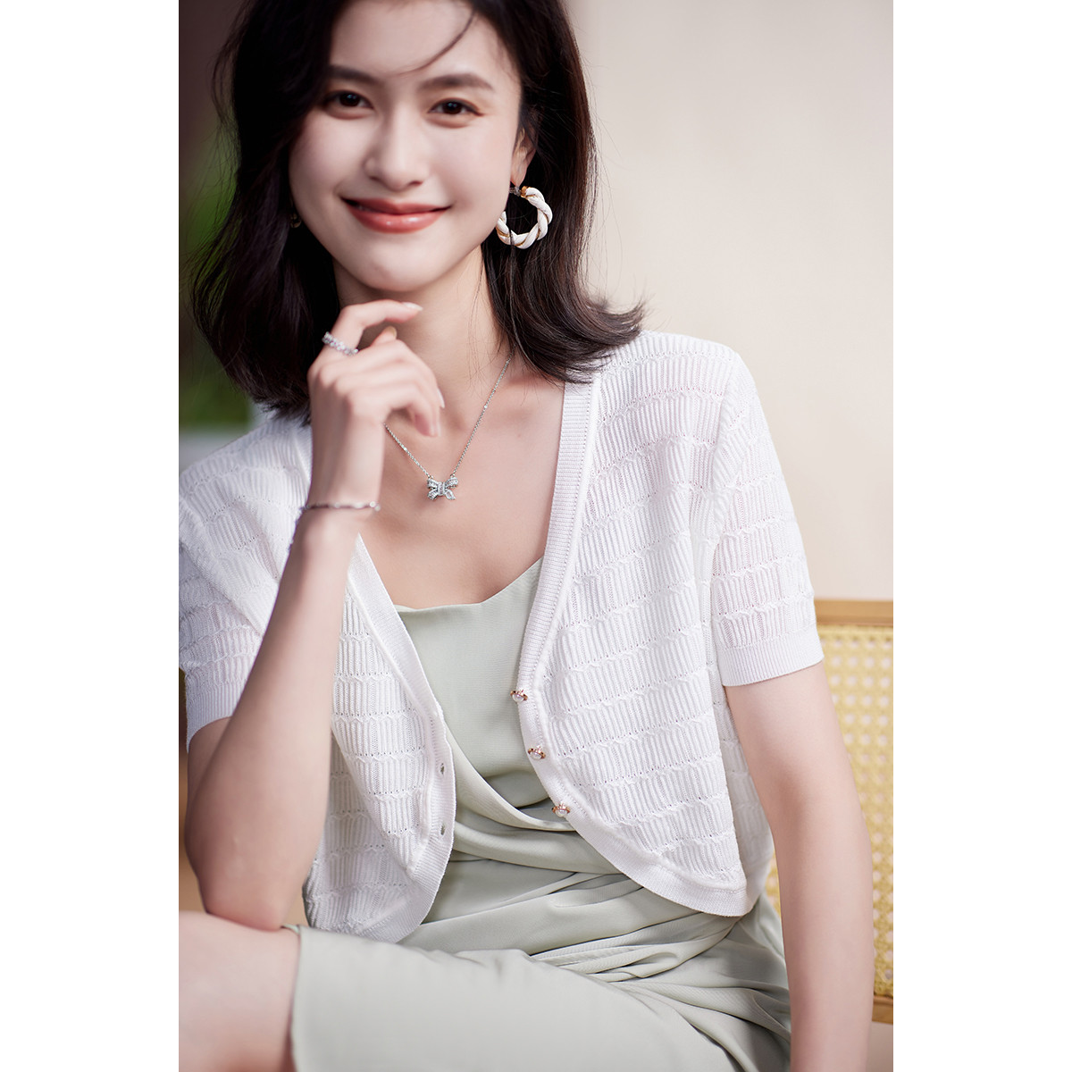 【含桑蚕丝含莱赛尔】夏季薄款短款披肩外搭镂空空调衫外套女夏季 702943